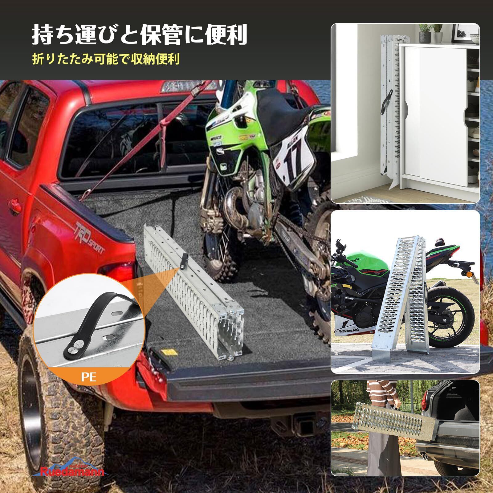【多用途】本製品はバイクや農機具等をトレーラー、トラック、積載車、納屋、ガレージへ積み込む際に使いやすい。設置簡単で、自転車、バイクに適用だけでなく、ATV四輪バギー、耕運機、除雪機、薪割り機などの農機にも適用、使用中の安定性を確保できて、作業負担を減少できます。
