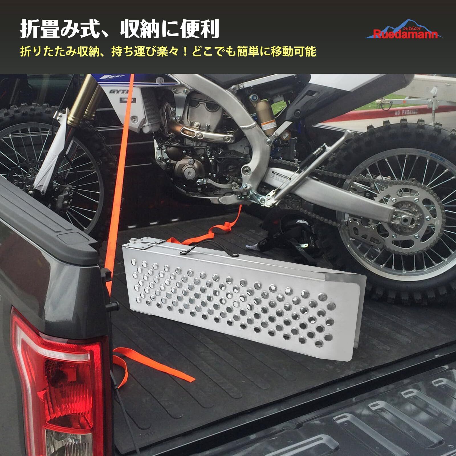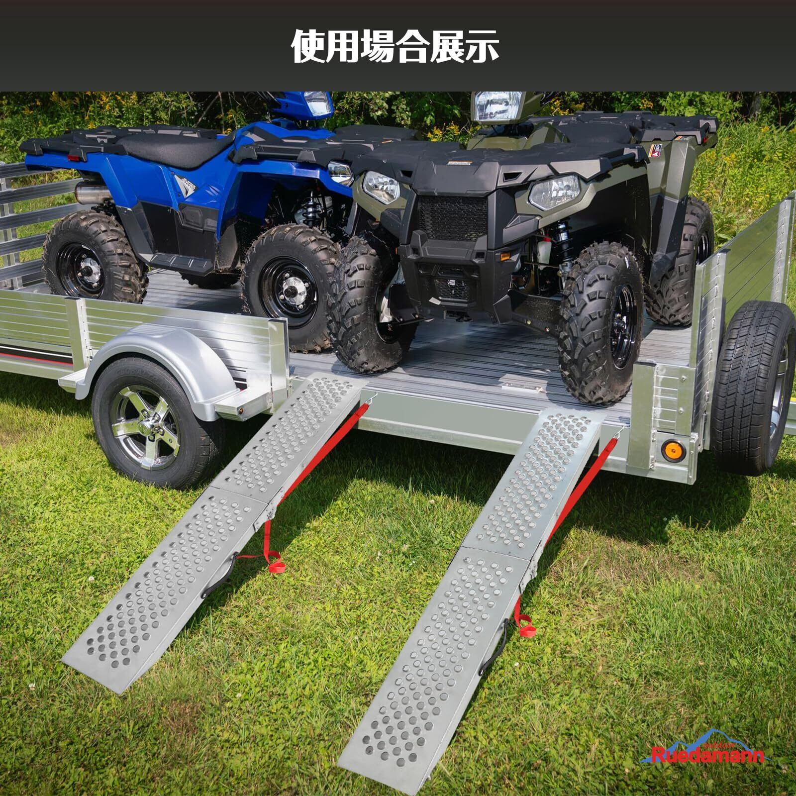 【多用途】本製品はバイクや農機具等をトレーラー、トラック、積載車、納屋、ガレージへ積み込む際に使いやすいラダーです。設置簡単で、自転車、バイクに適用だけでなく、ATV四輪バギー、耕運機、除雪機、薪割り機などの農機にも適用、使用中の安定性を確保できて、作業負担を減少できます。
