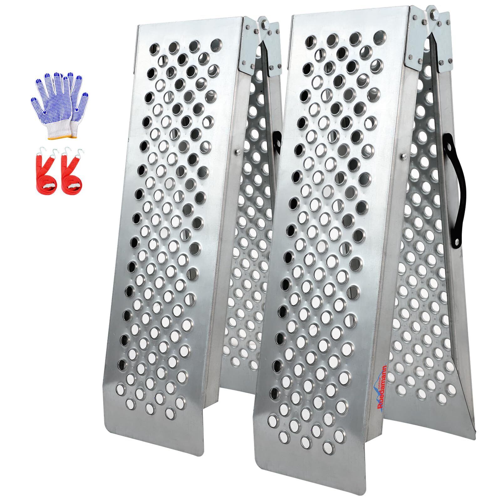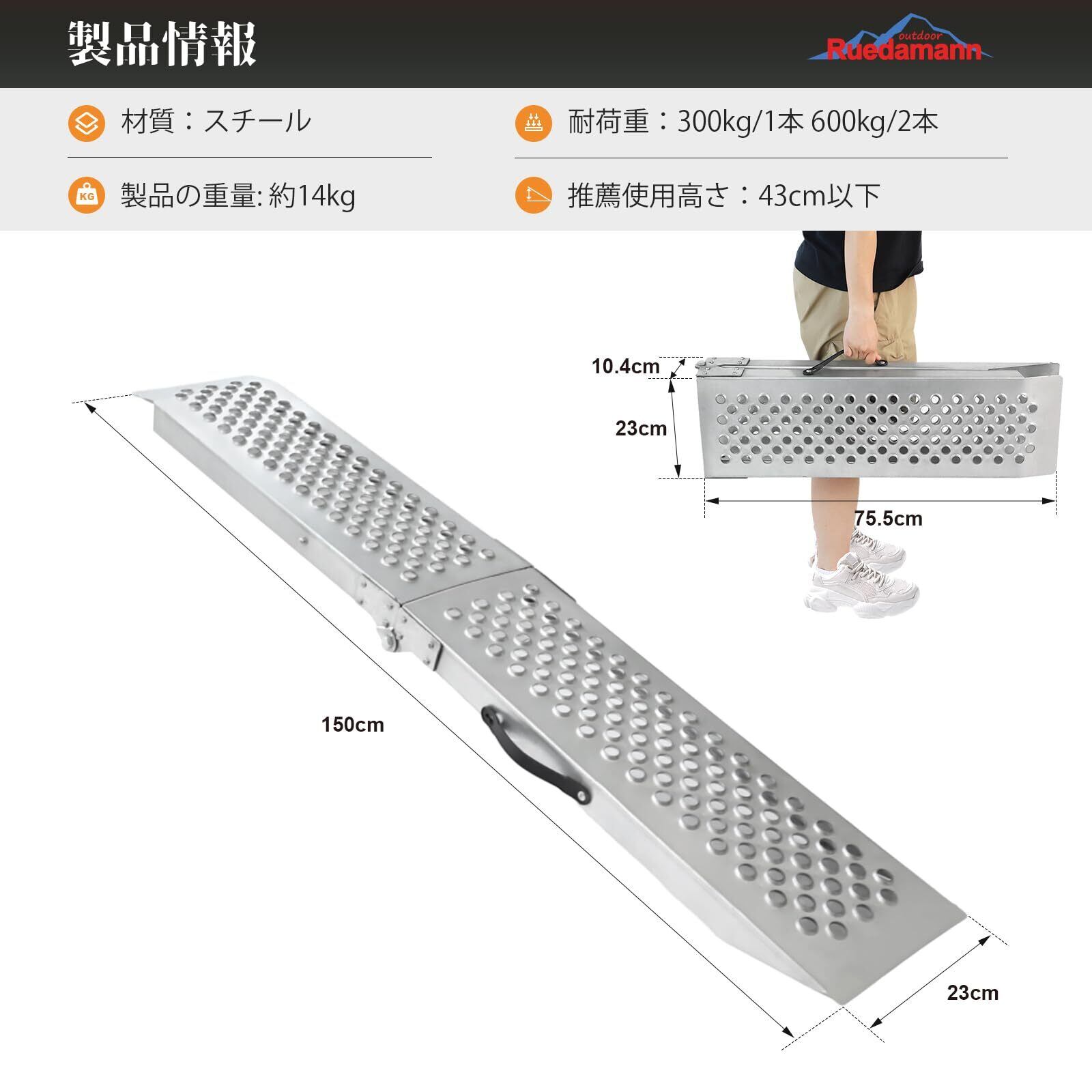Ruedamann バイク ラダーレール 長さ150*23cm ラダーレール 耐荷重600kg スチール製 折り畳み式 バイク スロープ 取っ手と手袋付き ATV四輪バギー 芝刈り機 除雪機 小型農機具用 軽トラ トレーラーへ積み込む 2本セット