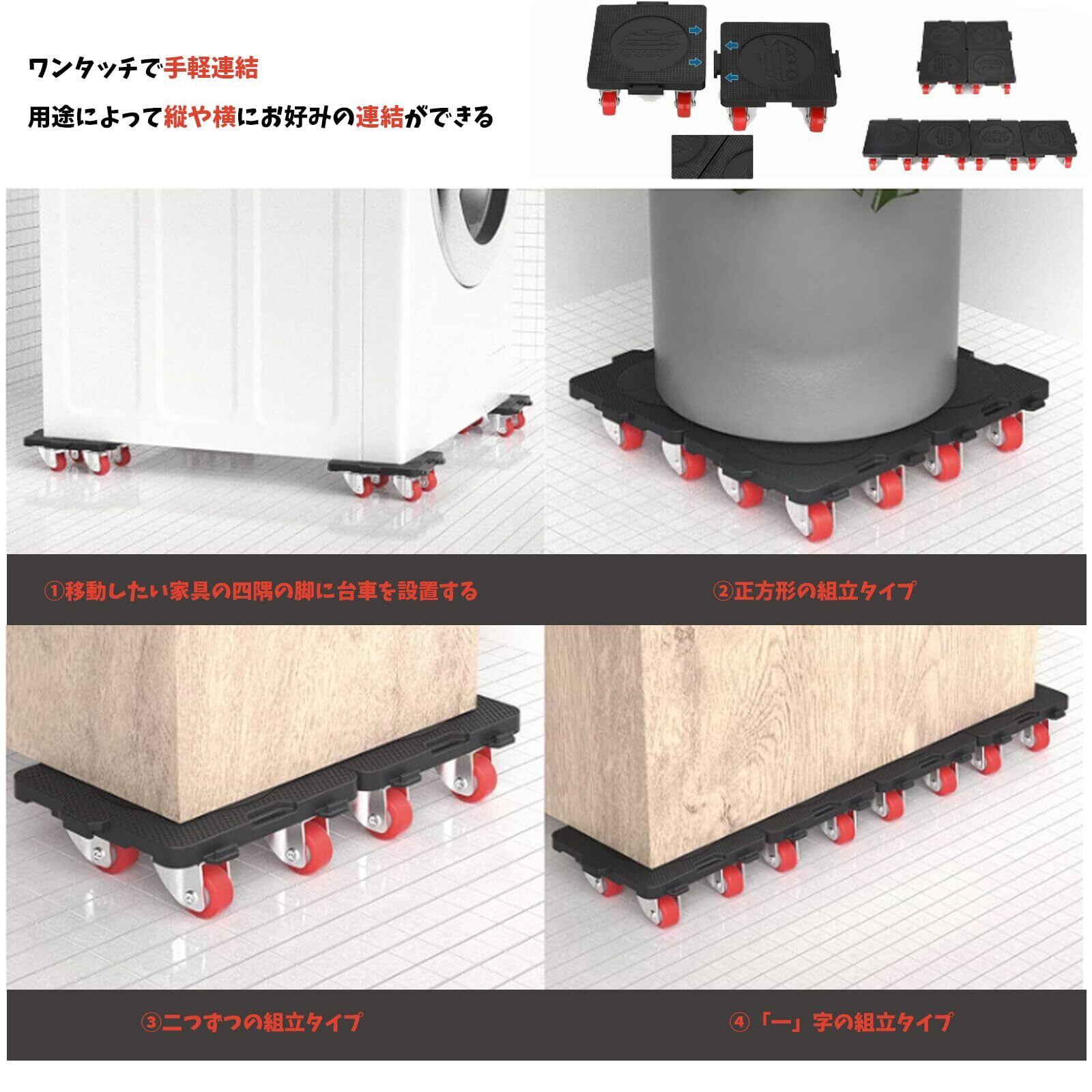 【アップグレードされた機能ドリー】これらの4つの360° 家具移動ヘルパーには、それぞれに5つの360度回転キャスターが付いており、重い物の移動が簡単になります。 また、相互に接続したり、ニーズに合わせてさまざまな組み合わせに組み立てたりすることもできます。360°回転させることができ、ハンドリングの手間を省き、女の子1人でも簡単に動かせる。注意:段差や傾斜のある床面、毛足の長いカーペット、絨毯では作業しないでください。
