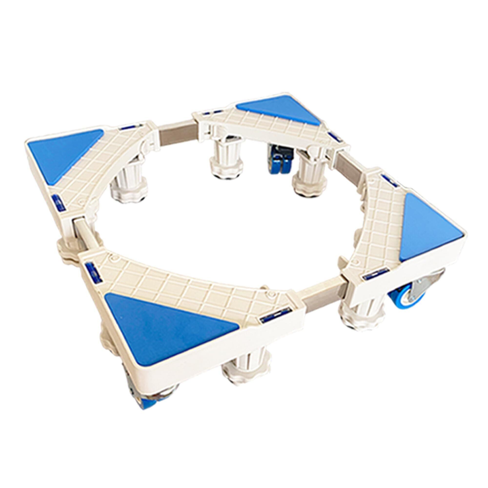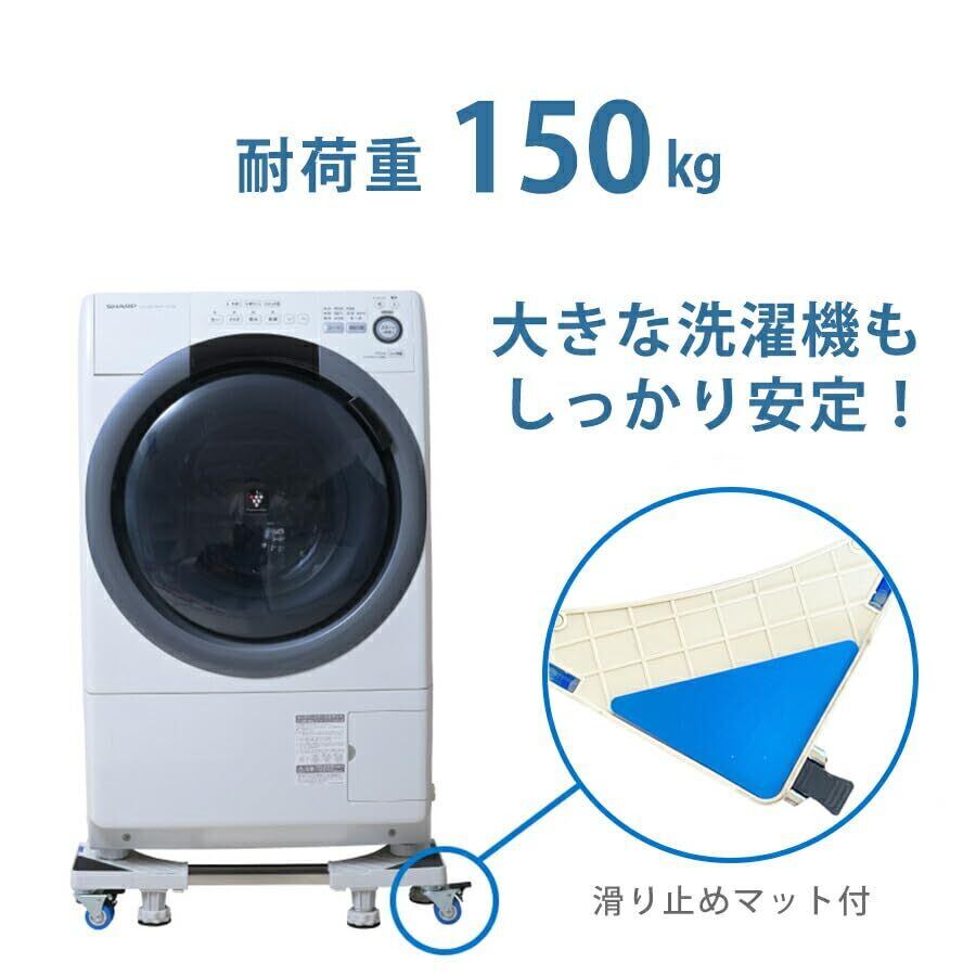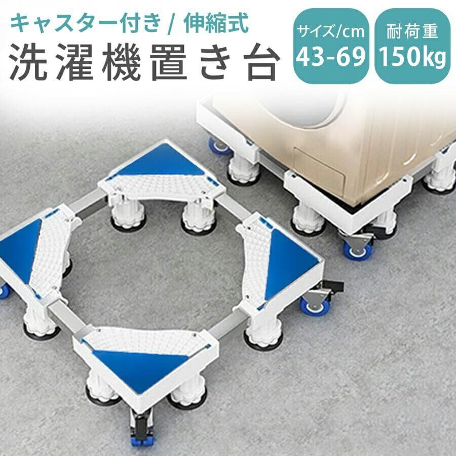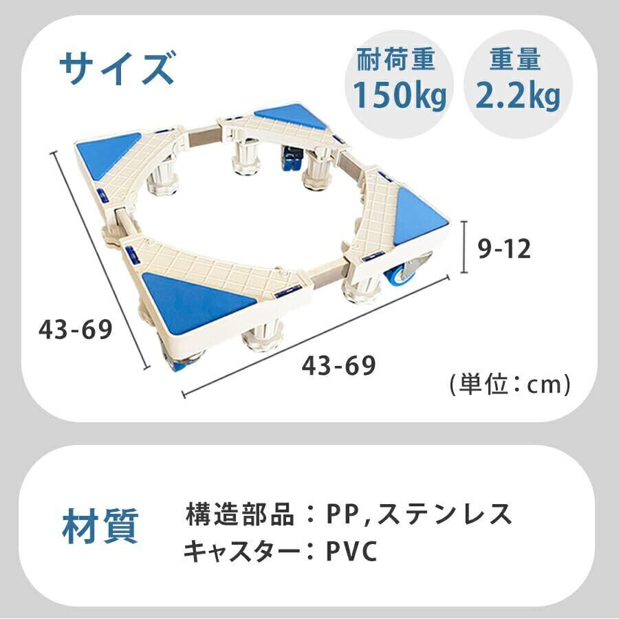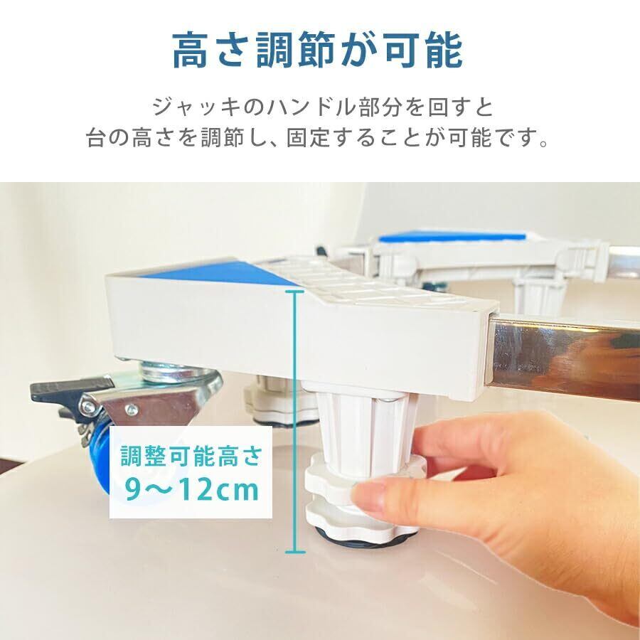 洗濯機 台 キャスター 8足4輪 洗濯機置き台 スライド台 防水パン 冷蔵庫置き台 洗濯パン 防振パッド 360度回転 長さ調節可能 高さ調節可能 移動式 伸縮式 昇降可能 騒音対策 減音効果 ホワイト sen-001