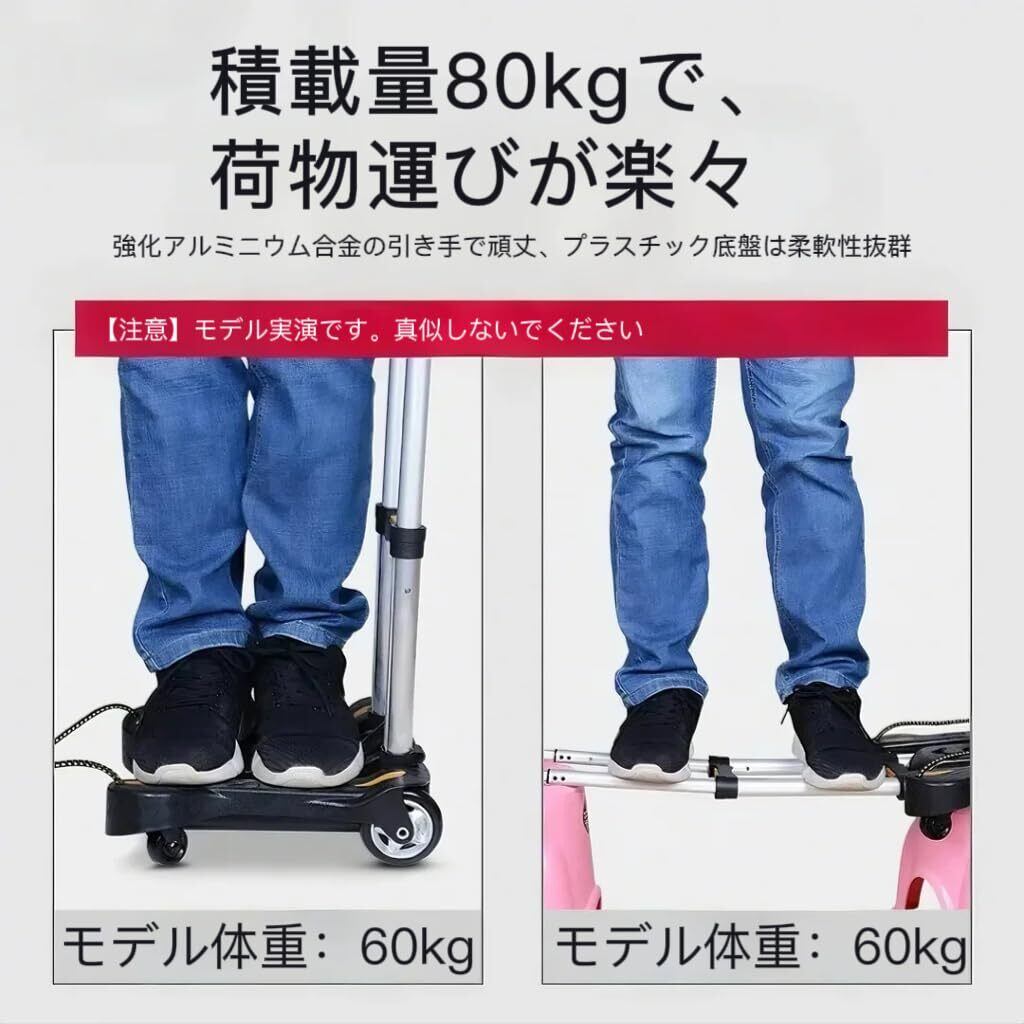 【耐荷重80kg&幅広い用途】 耐荷重80kgの強化設計で、重い荷物もしっかり運搬!ショッピング、引っ越し、学校やオフィスでの荷物運びなど、多様なシーンで活躍します。