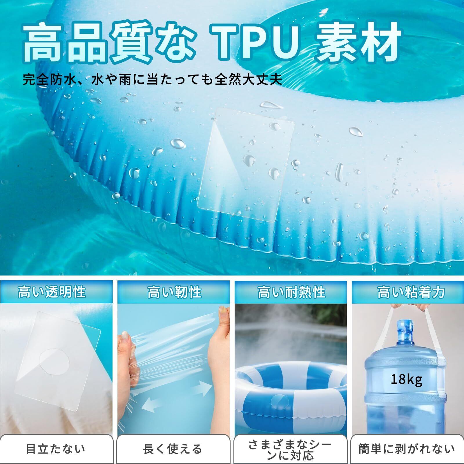 【超強力粘着 & 完全防水】強力補修テープは、革新的な TPU 素材を採用し、従来製品に比べて300% も高い粘着力を実現しています。水に浸しても剥がれる心配なく、雨や濡れた環境下でも確実に補修効果を発揮します。浮き輪のキズ、テントの穴、レインウエアの破れなど、水にさらされる場所でも安心して使用できます。もしこれまで補修シートの接着力に不満を持っていたのであれば、ぜひこの製品を試してみてください。