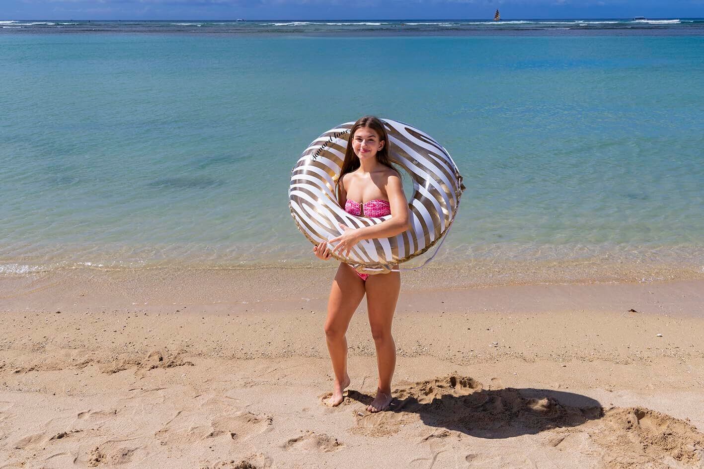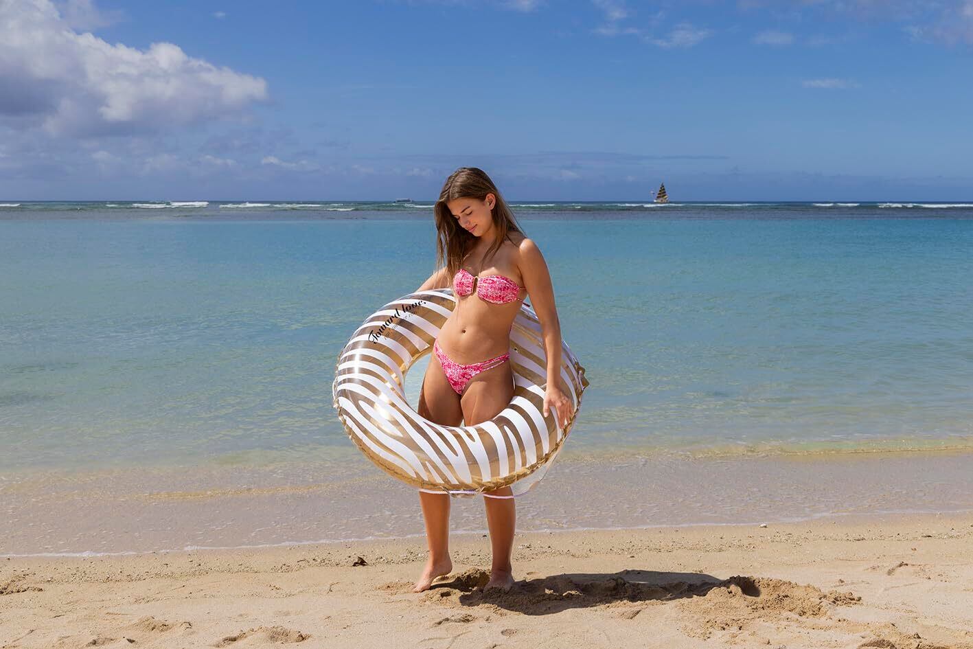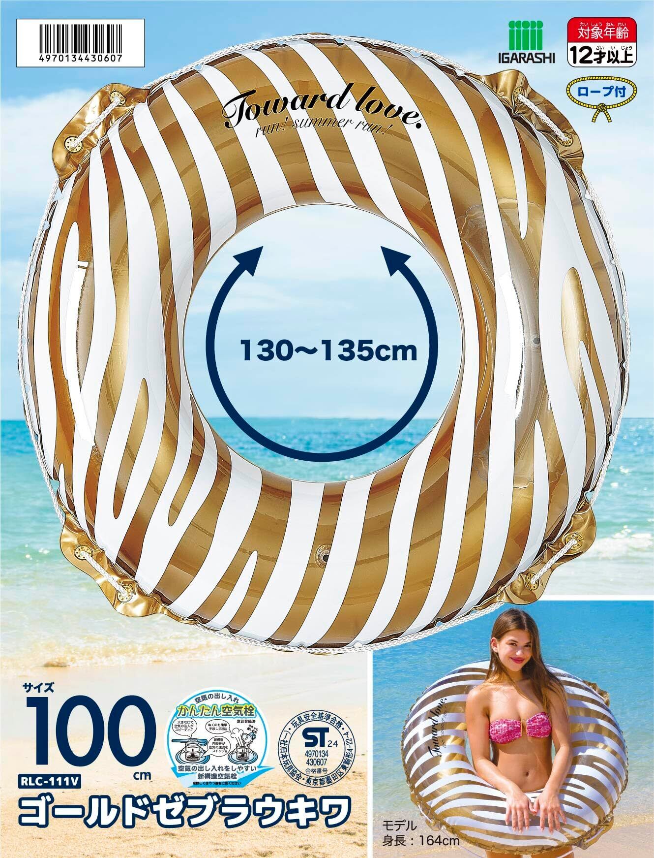 イガラシ 100cm浮き輪 ゴールドゼブラウキワ ロープ付き RLC-111V