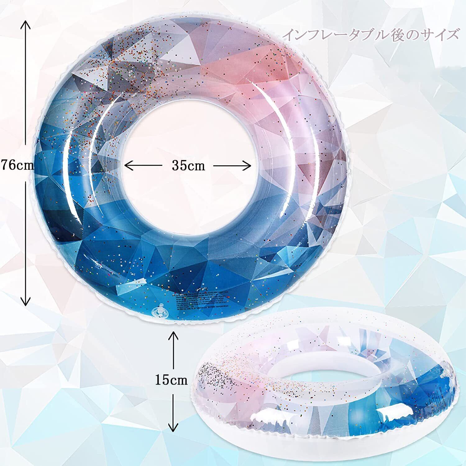 パッケージには:1×浮き輪。膨張可能な外径は76cmで、インフレータブル後の内径は35cmです。重量は約350gです。厚さは0.2mmです。簡単なインフレータブルと排気できます。軽量でどこでも簡単に運ぶことができます。