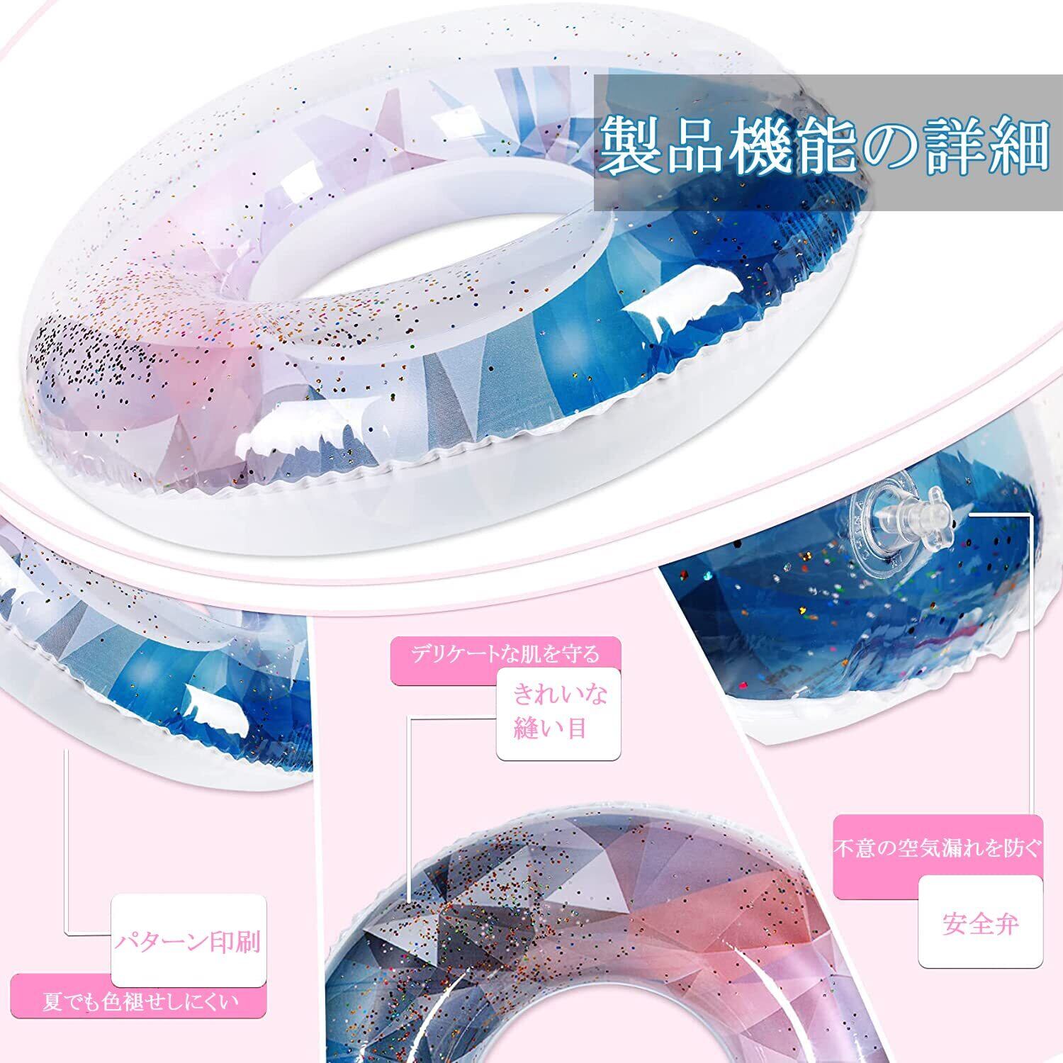 高品質の素材:環境に優しいPVC材料、耐久性のある。フェードや割れずに浮き輪を保護することができます。ご注意:PVC製品なので、少し匂いがあります。風通しのよい場所で換気してください。または水洗いしてください。