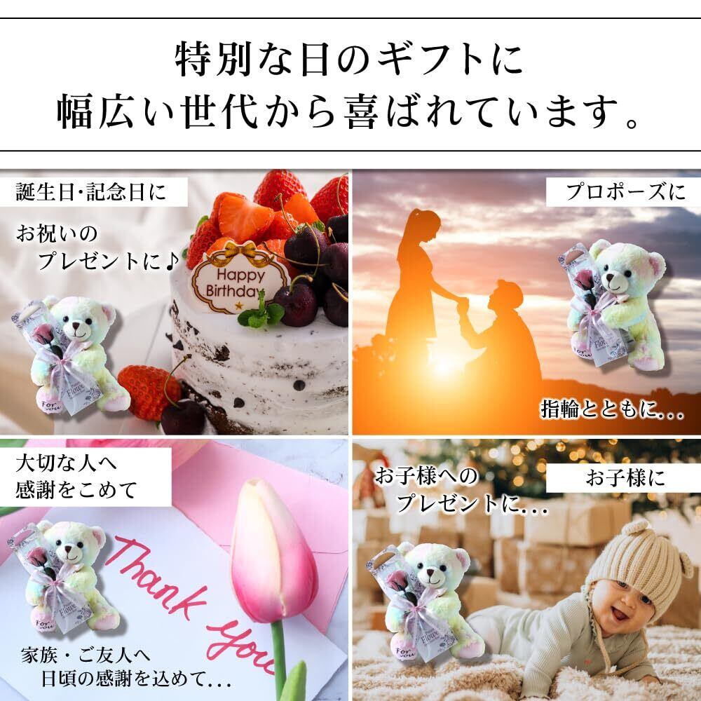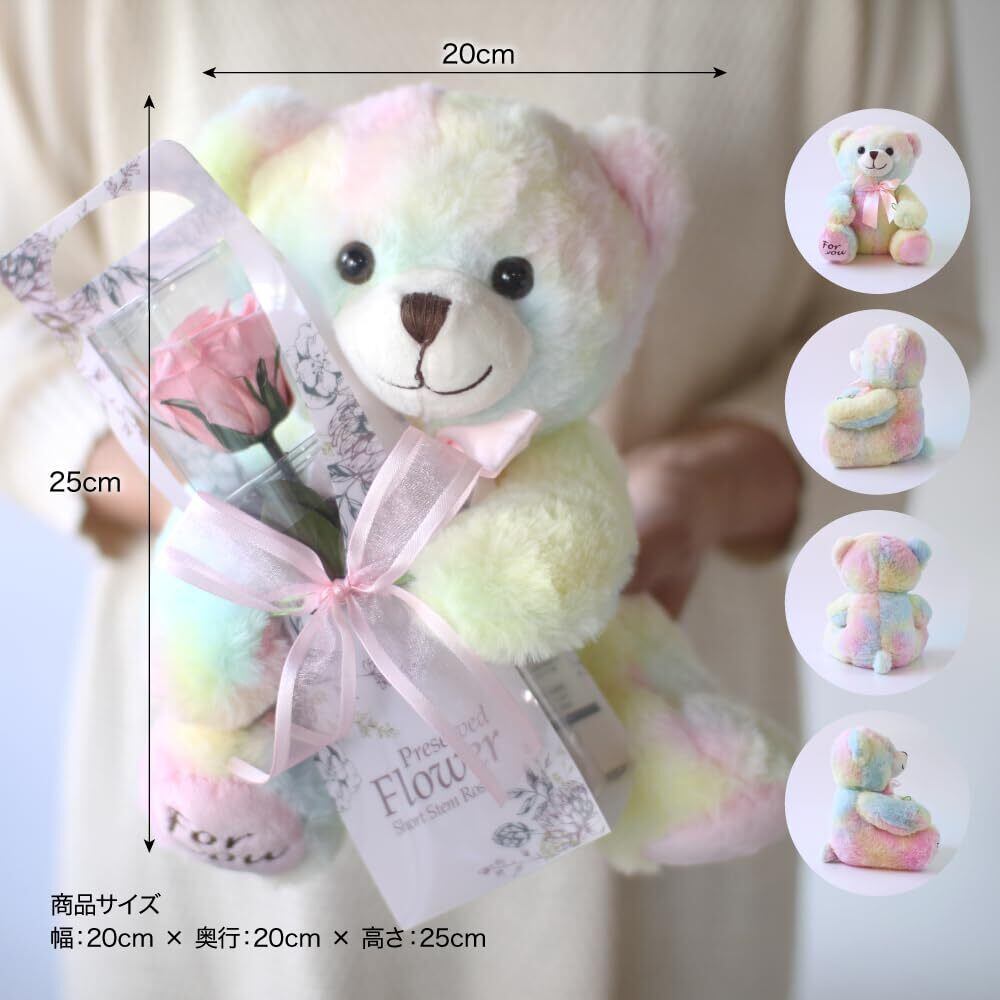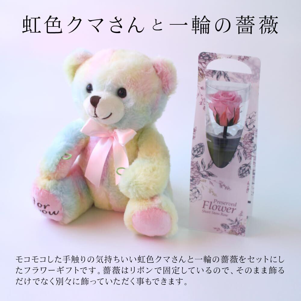 プリザーブドフラワー プリザードフラワー 虹色クマさんと一輪の薔薇 ピンク プレゼント お祝い 記念日 誕生日 アレンジ フラワーギフト フラワーアレンジメント 枯れないバラ 花 女性 くま 母の日 プレゼント 花