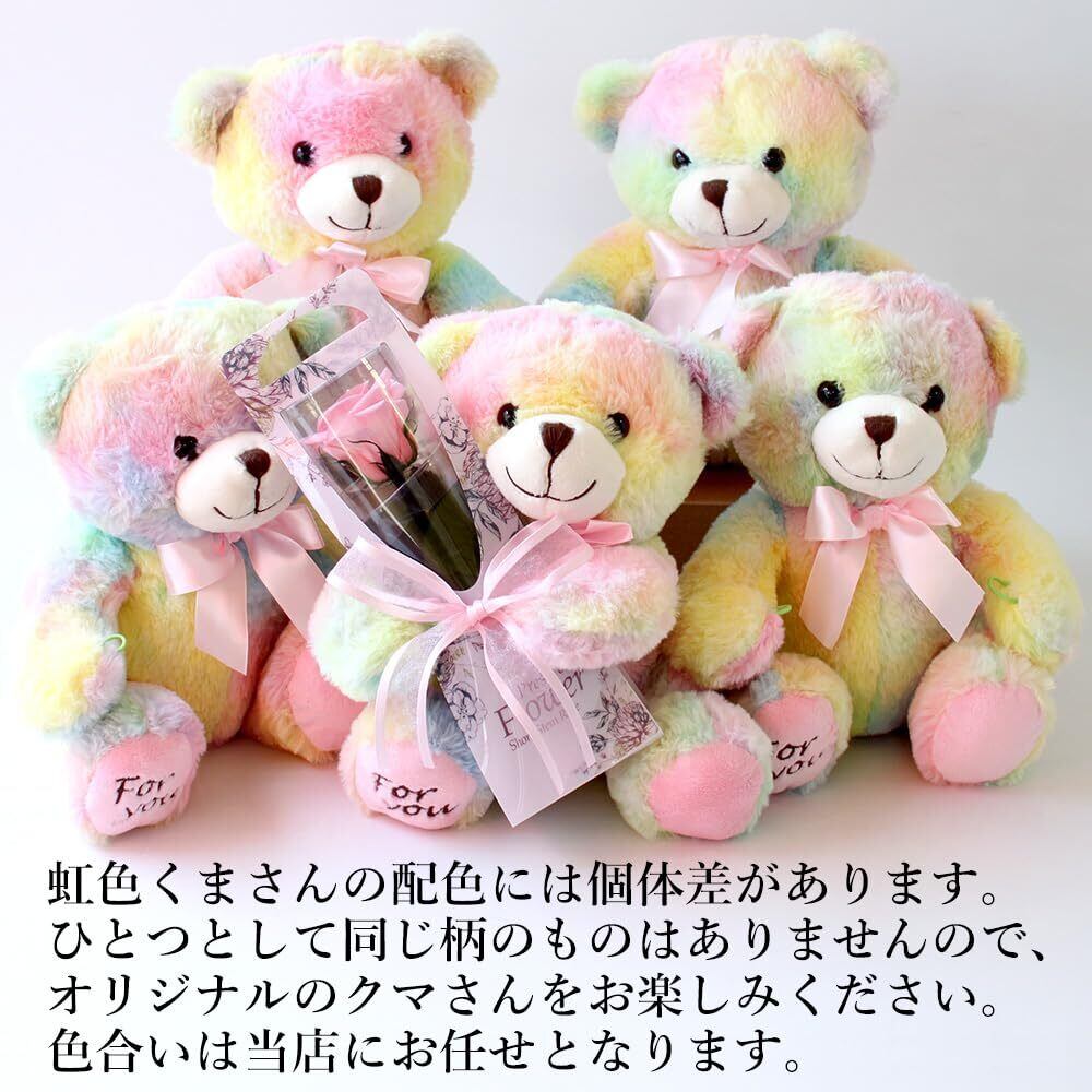 【特価セール】プリザーブドフラワー プリザードフラワー 虹色クマさんと一輪の薔薇 ピンク プレゼント お祝い 記念日 誕生日 アレンジ フラワーギフト フラワーアレンジメント 枯れないバラ 花 女性 くま 母の日 プレゼント 花 | gsmshop