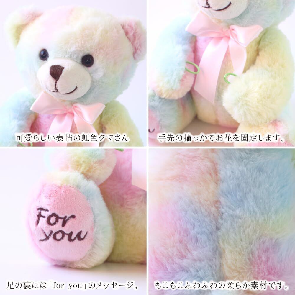 【各イベントやお祝いに】パステルカラーのテディベアが、一輪のバラを抱いて思いを届けてくれます。誕生日や結婚祝い、出産祝い等、プロポーズや母の日など、各イベントやお祝いに年齢を選ばず喜ばれます。ぬいぐるみと薔薇はリボンで固定、ほどくと別々に飾っていただくこともできます。