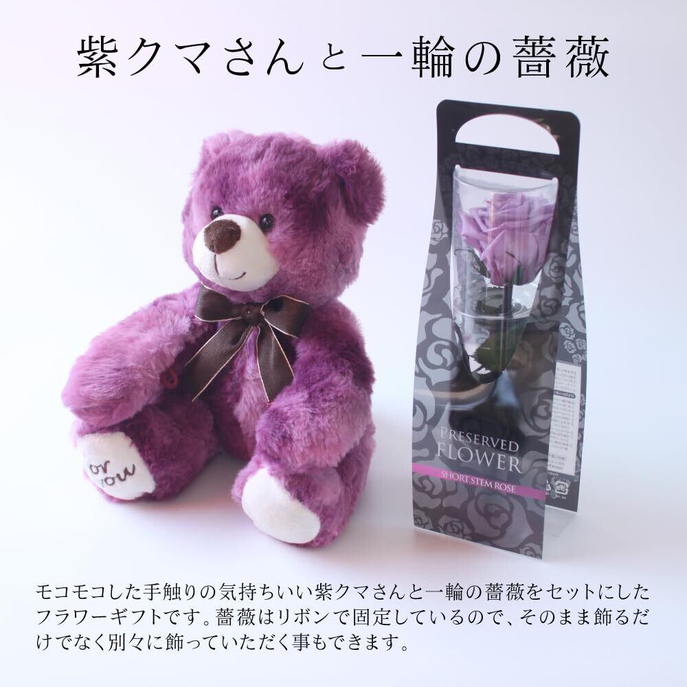 プリザーブドフラワー プリザードフラワー 紫クマさんと一輪の薔薇 紫 プレゼント お祝い 記念日 誕生日 アレンジ フラワーギフト フラワーアレンジメント 枯れないバラ 花 女性