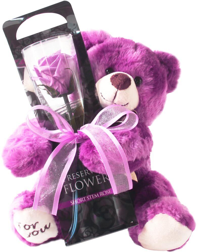 【新春セール】プリザーブドフラワー プリザードフラワー 紫クマさんと一輪の薔薇 紫 プレゼント お祝い 記念日 誕生日 アレンジ フラワーギフト フラワーアレンジメント 枯れないバラ 花 女性 | gsmshop