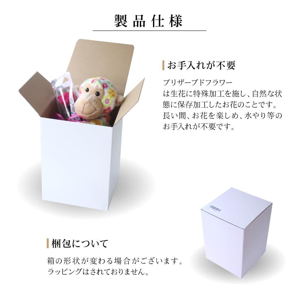 【お手入れが不要】プリザーブドフラワーは長期間きれいな状態を保てる、枯れないお花です。直射日光を避け、高湿度に注意すれば長くお楽しみいただけます。(本商品はドライフラワーではございません)[本商品はボトルの中にリキッドは入っていない商品です。]