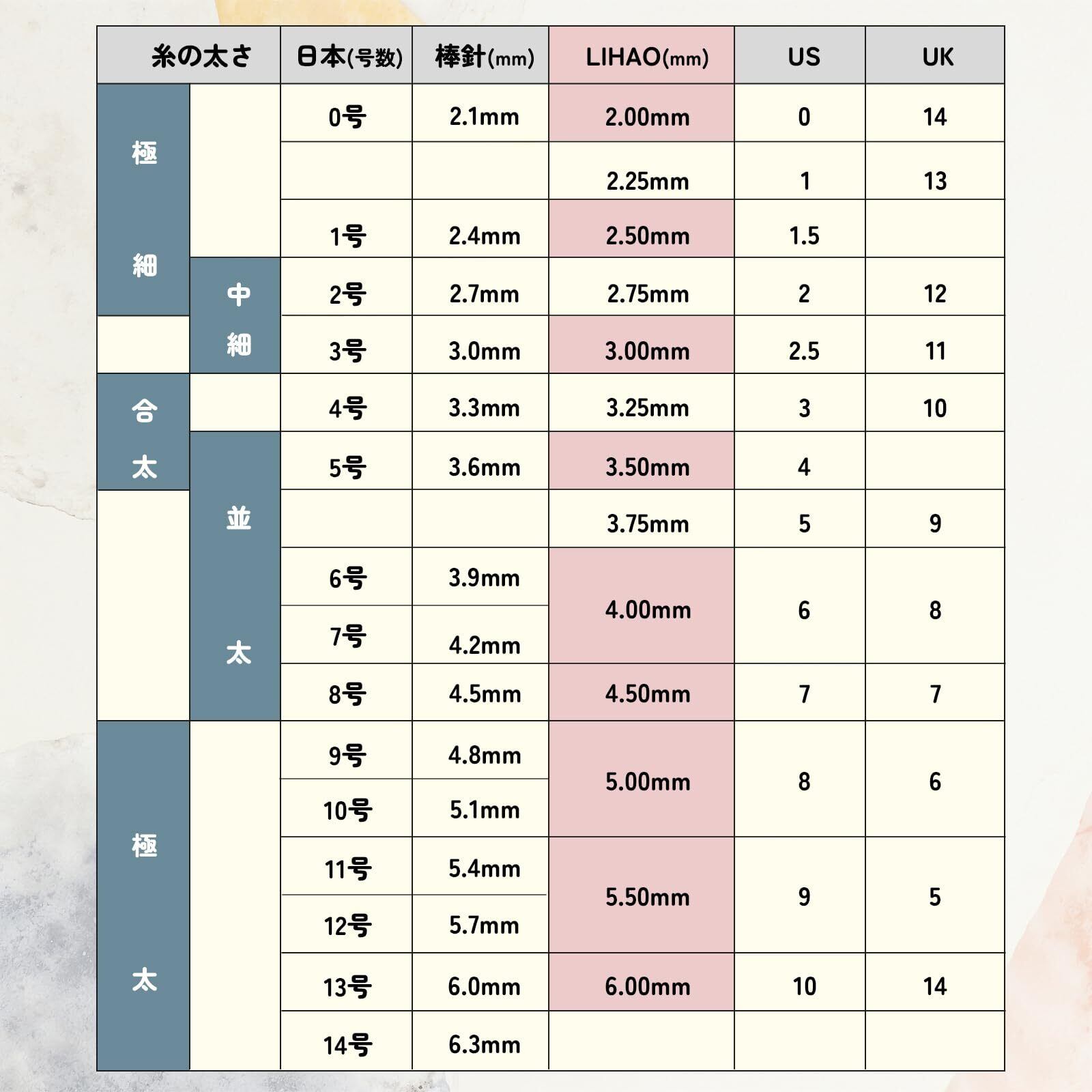 【 9 サイズ 】サイズが刻印されているので、サイズを見分けることは簡単!2.0mm、2.5mm、3.0mm、3.5mm、4.0mm、4.5mm、5.0mm、5.5mm、6mm