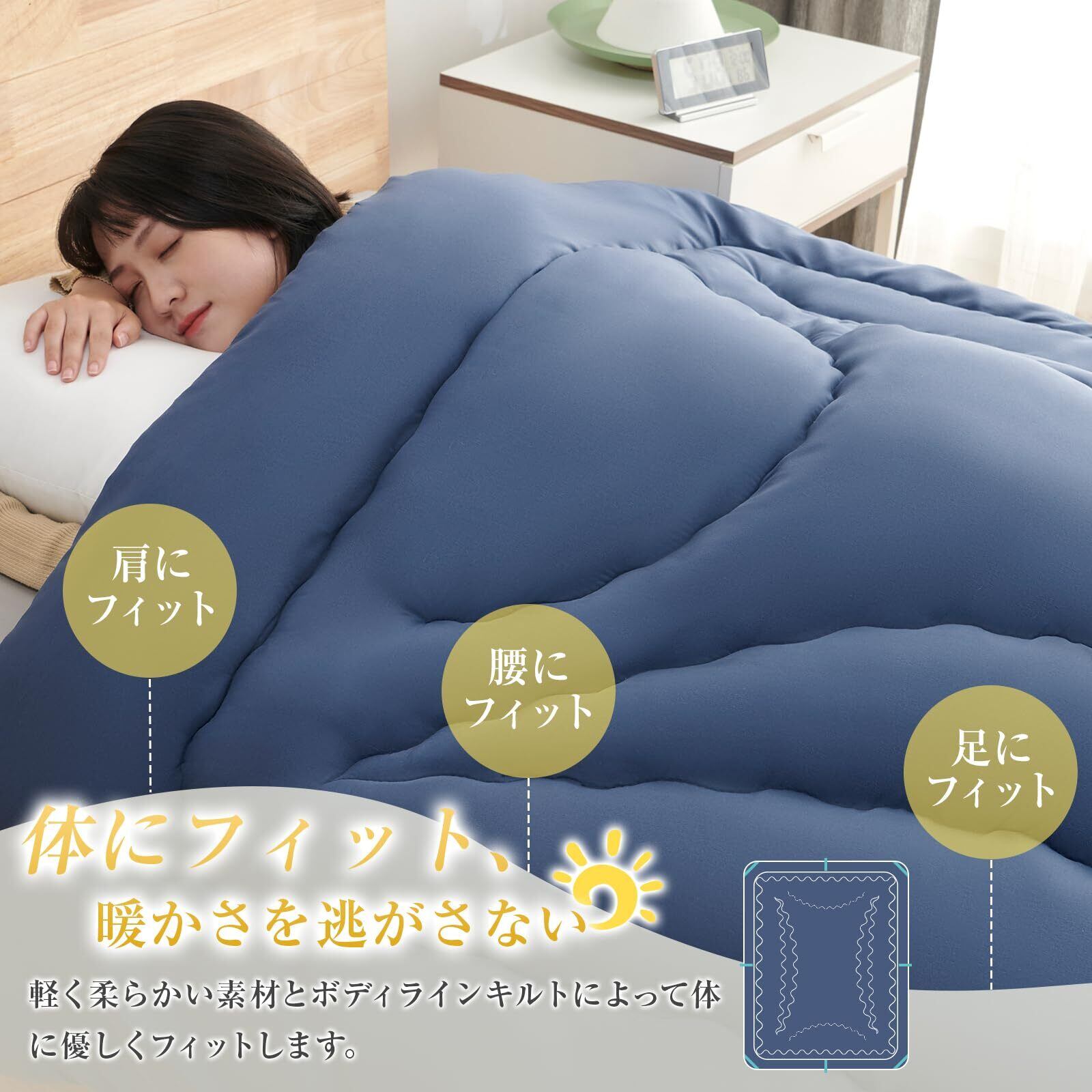 【ピーチスキン加工、やわらかくしっとり触感】肌に優しいピーチスキンの触り心地でしっとり気持ちよく、ムレにくく快適です。ほこりが出にくい、綿切れしにくい、中空ポリエステル綿を使用。ズレ防止ループ付き端の8ヶ所にズレ防止用ループが付いているので、お布団がズレる心配もありません。