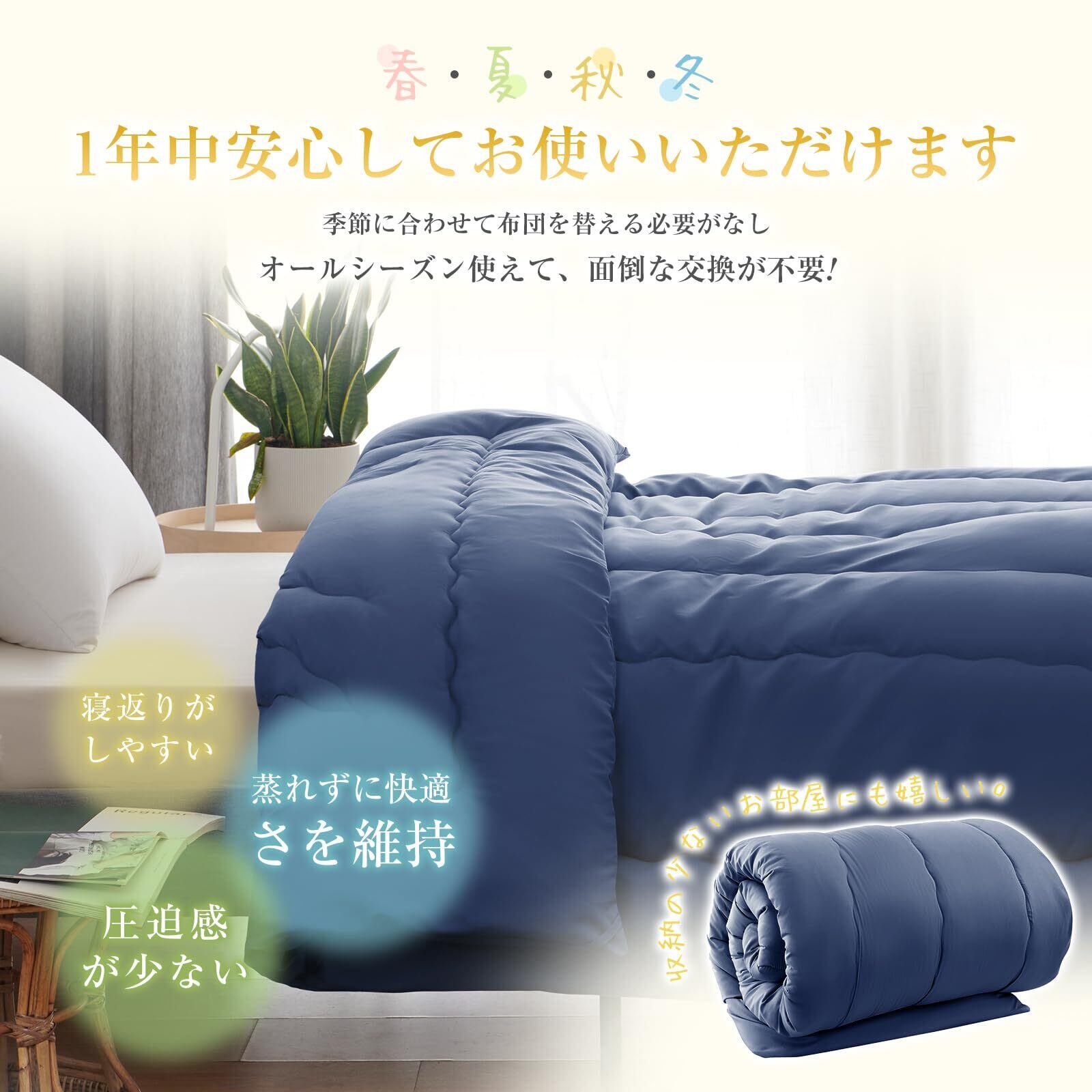 掛け布団 シングル 肌掛け布団 オールシーズン 洗える 掛けふとん かけ布団 柔らかな肌触り ほこりが出にくい 通気性 軽量 抗菌防臭 ふとん 合掛け布団 掛布団 【SEK衛生認証 Ag+銀イオン抗菌素材 アレルギー対策】 150x210cm ネイビー (中綿約1.0KG)