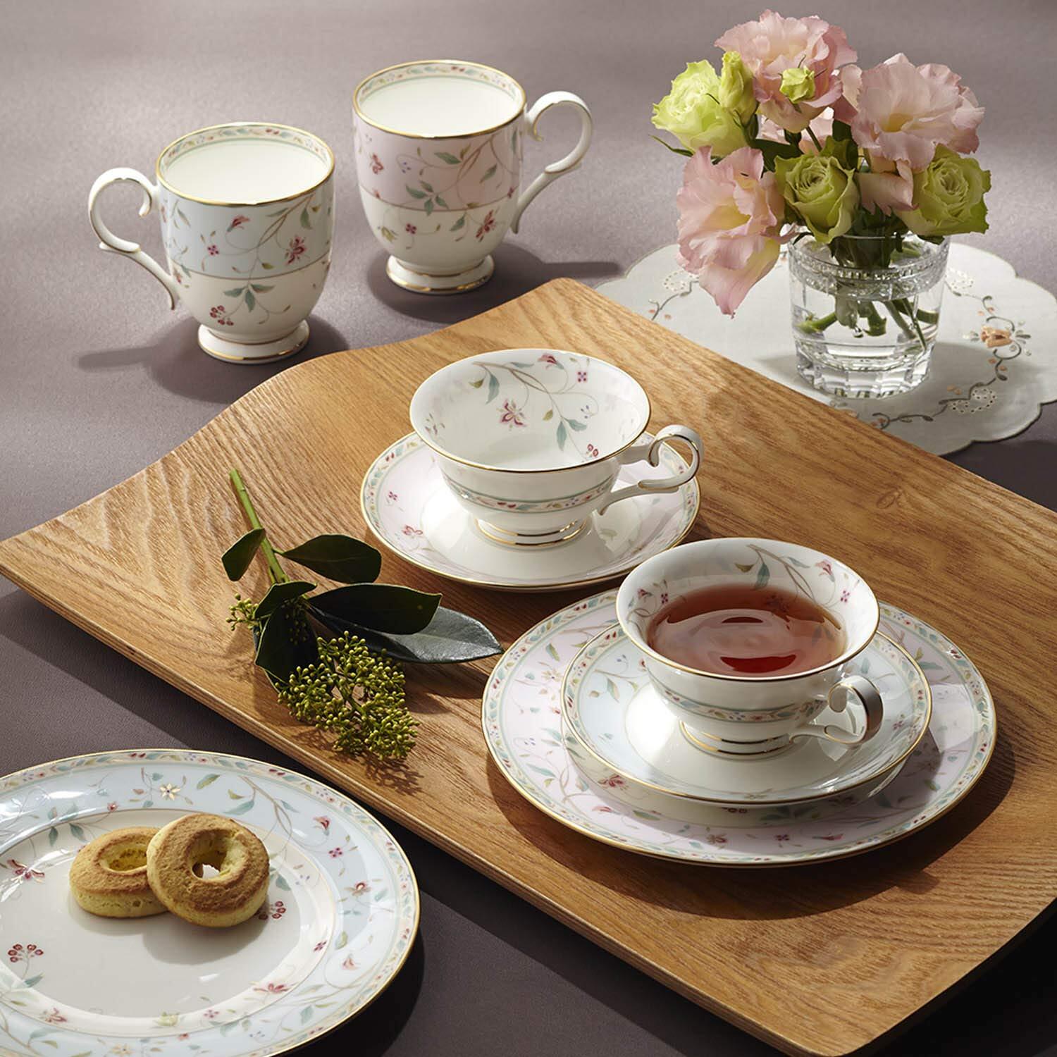 【新着商品】Noritake ノリタケ マグ & プレート ( 色変り ペアセット ) マグ:320cc プレート:21cm 花更紗 マグ:2個 プレート:2枚 ピンク ・ ブルー ボーンチャイナ M9712/4409-56 | gsmshop