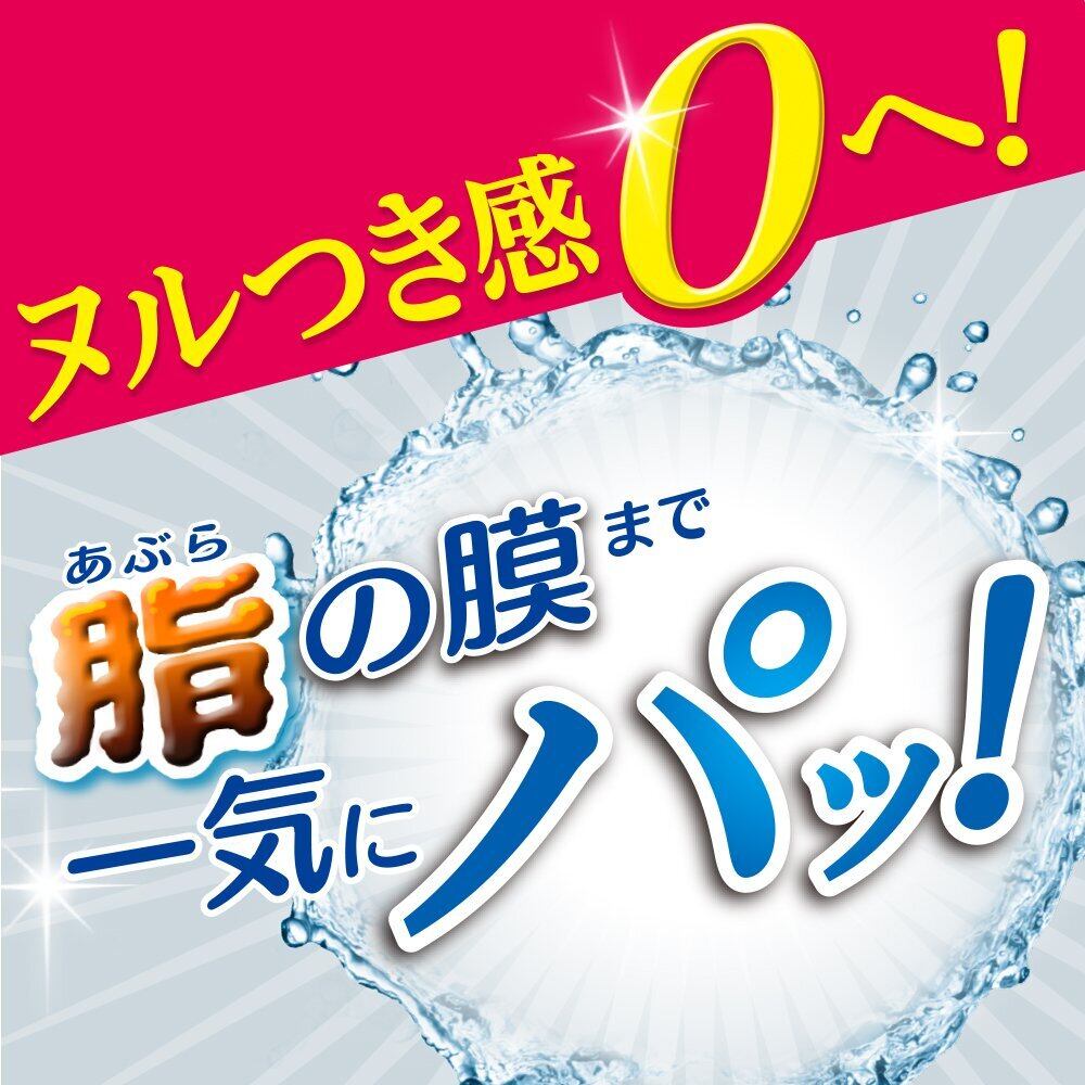 濃密泡とすすぎの早さを両立した、独自のハイブリッドウォッシュ処方で、固まった油汚れまで細かく分解し、まっさら清潔な仕上がりに。