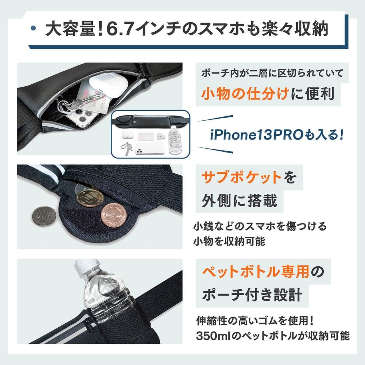 【2022最新】ランニング ポーチ 【揺れない・大容量】 ペットボトル 水筒ポーチ付き 軽量 スマホ対応 防水 伸縮性 ジョギング メンズ レディース