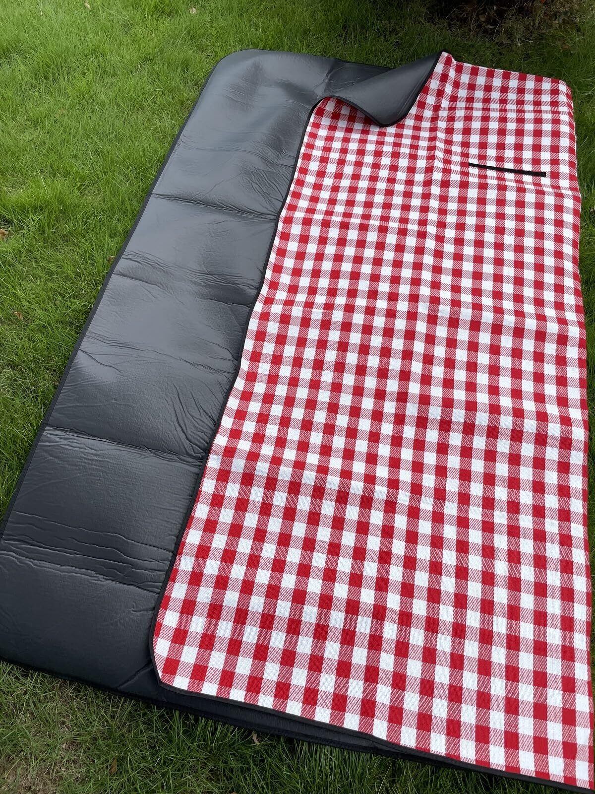 【優れた生地】表面:防水耐久性アクリル繊維、起毛素材です、汚れが付着しづらい防水生地。汚れても濡れた布で簡単に拭き取ることができます。 裏地:裏面はPEVA素材で地面や草からの湿気を防いでくれますし、防水防湿で、通気性、耐磨耗性にも優れて引っ張っても割れないです。