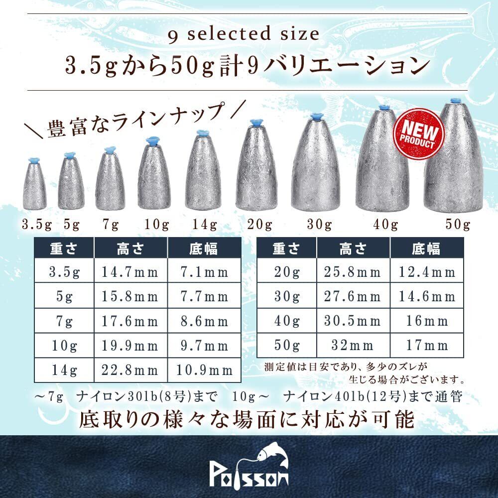Poisson(ポアソン) チューブ入りバレットシンカー 9バリエーション 50g 40g 30g 20g 14g 10g 7g 5g 3.5g 釣り 重り ワーム テキサスリグ