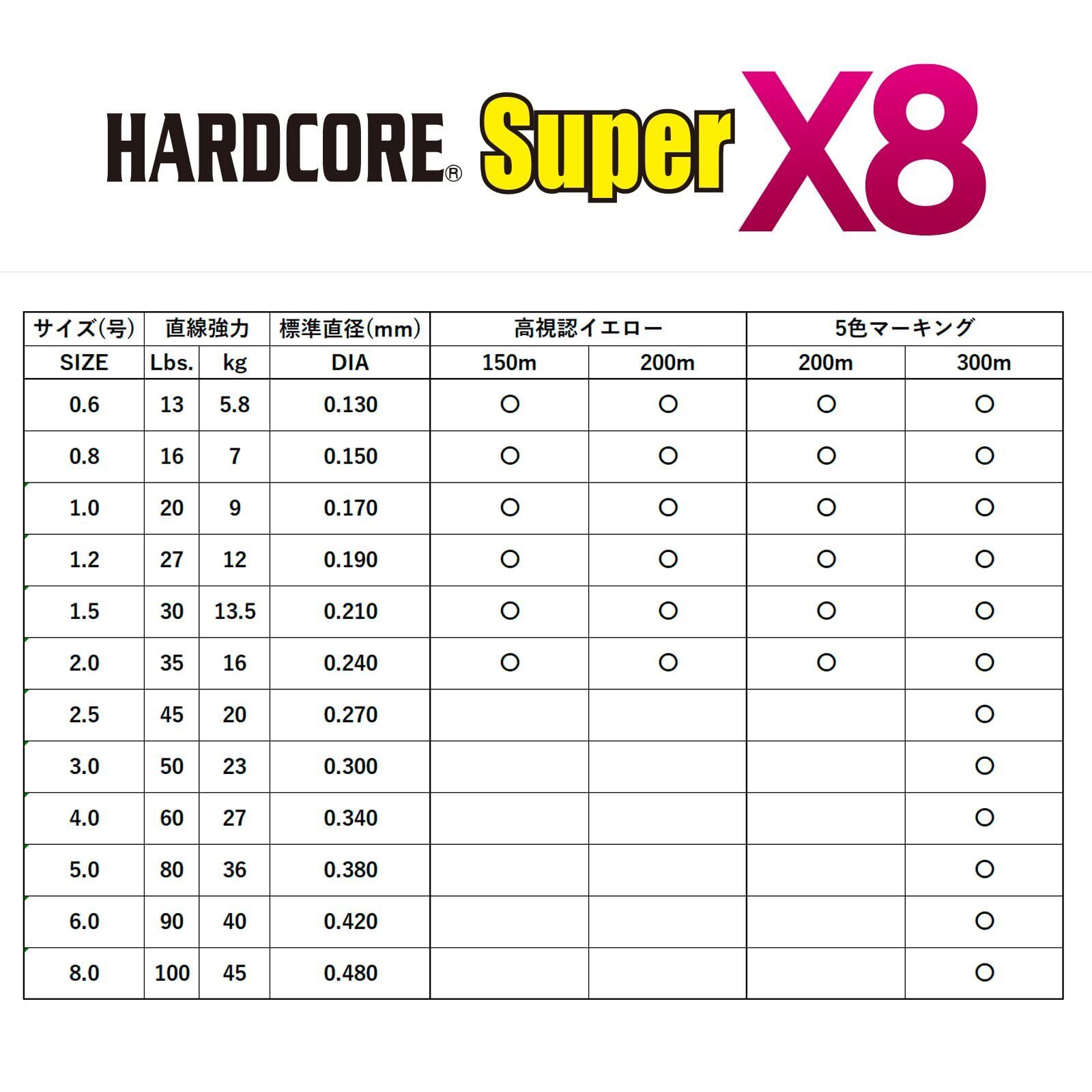 デュエル(DUEL) ハードコア PEライン スーパー X8 150m/200m/300m 0.6号~8.0号 高視認イエロー/5色マーキング