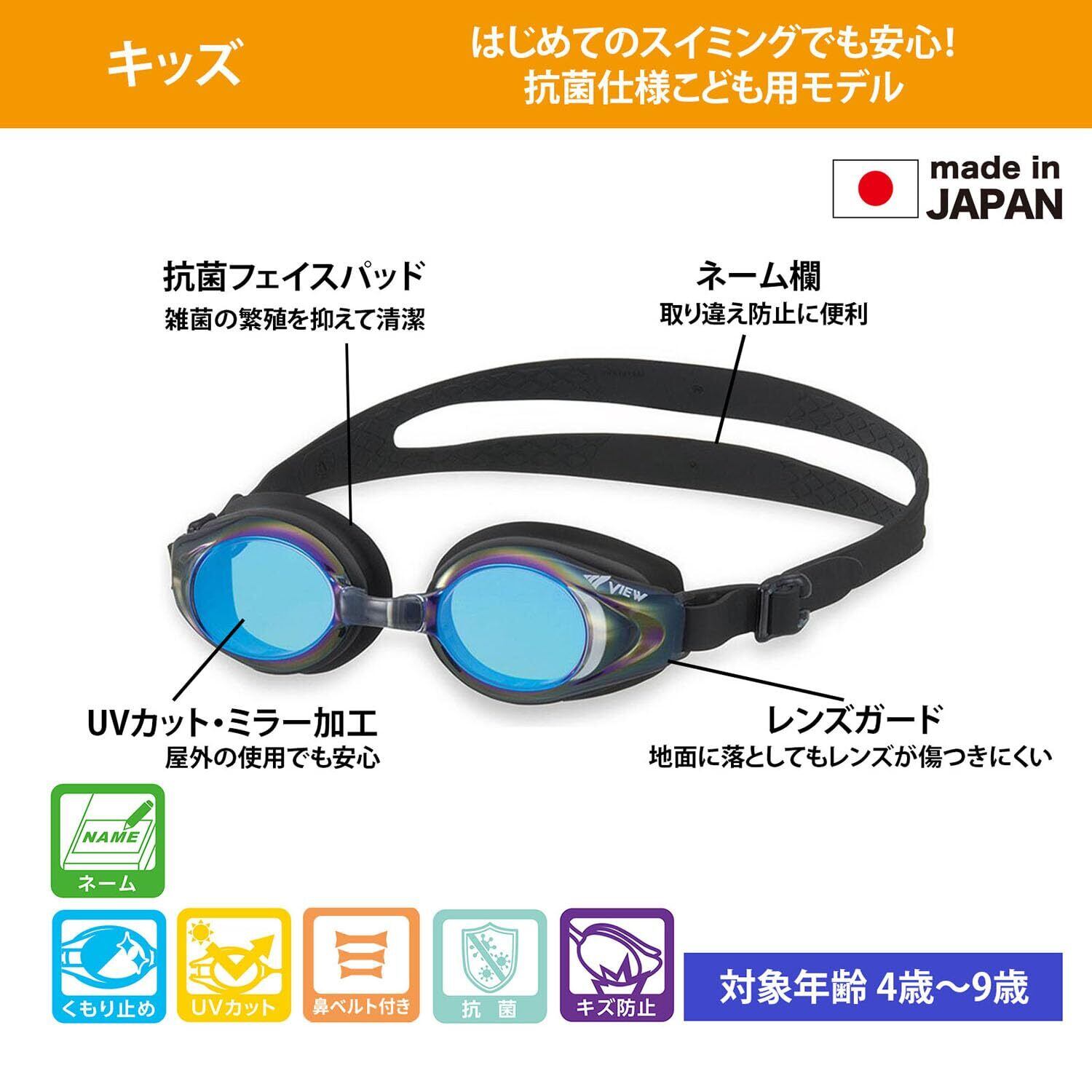 VIEW(ビュー) 日本製 屋外プールでのまぶしさを軽減するミラータイプ子ども用スイミングゴーグル 4~9歳用設計だから水がはいりにくい 抗菌機能付 V710JMR