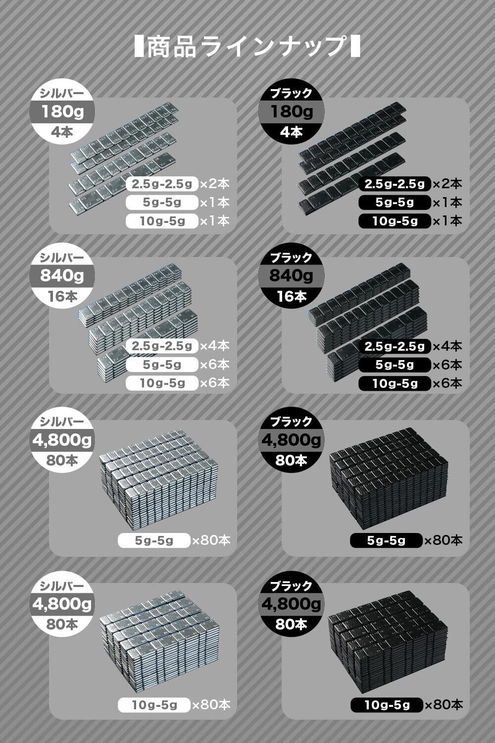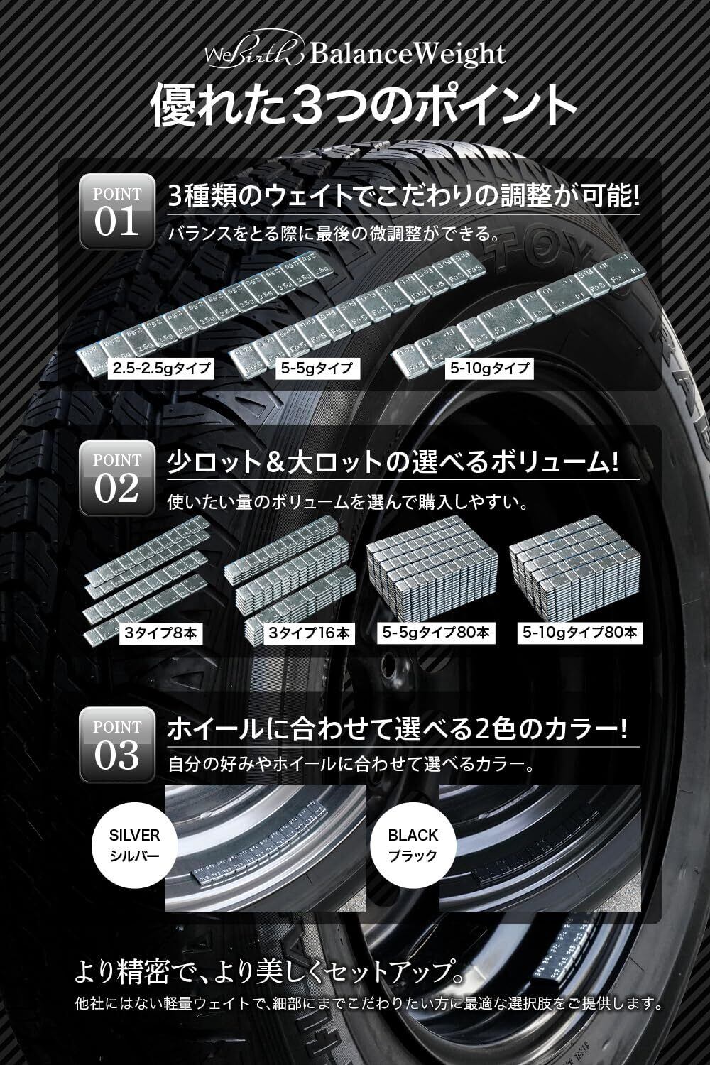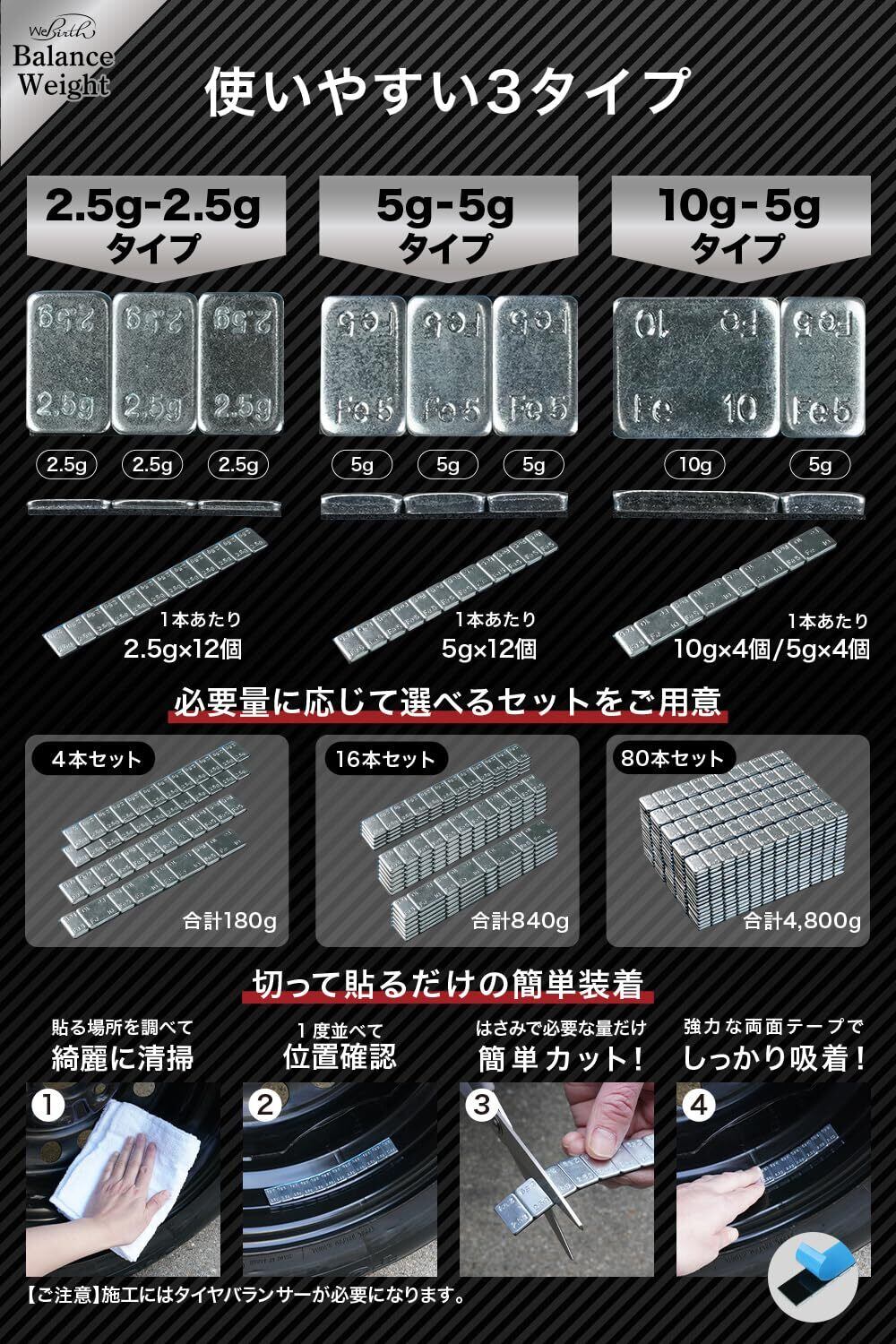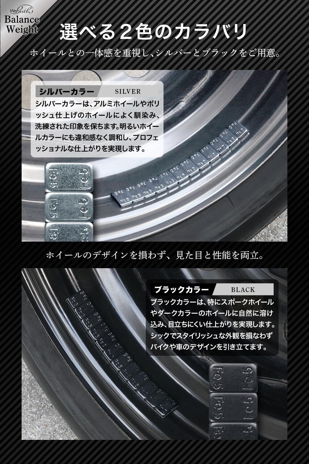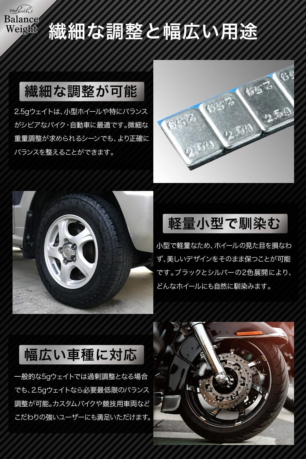 WeBirth バランスウェイト 【2.5gウェイトで微調整可能】 シルバー ブラック ホイール 自動車 バイク 0.18kgの小容量 0.84kg 4.8kgの大容量 2.5g/2.5g刻み 5g/5g刻み 5g/10g刻み (ブラック, 合計180g)