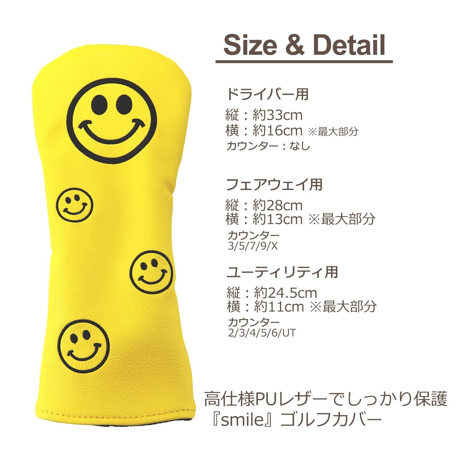 ゴルフ ヘッドカバー ドライバー440cc 460cc用カバー ウッド用カバー ユーティリティ UT用カバー 防水仕様 スマイル