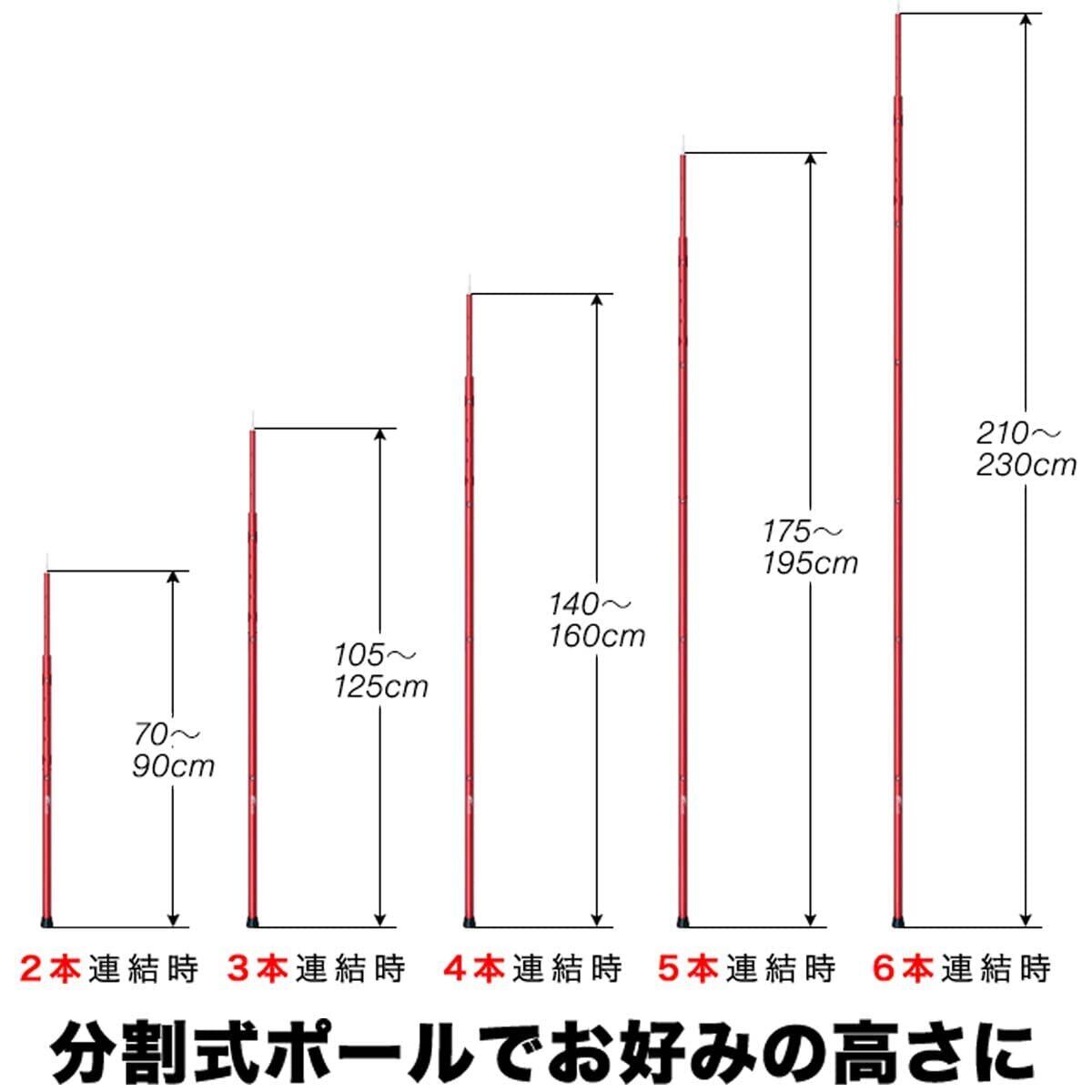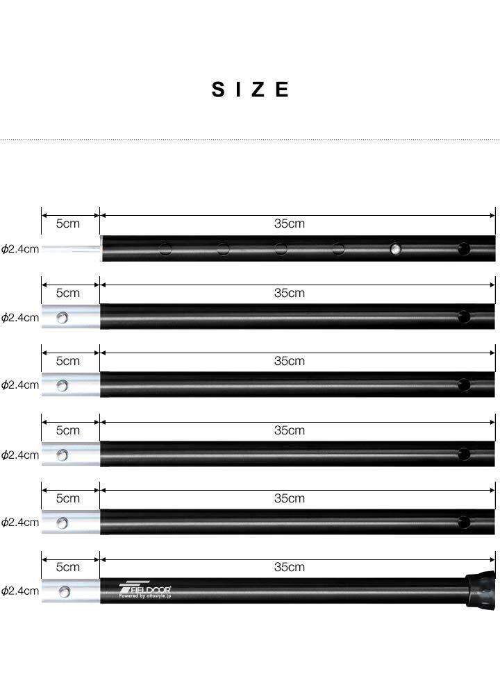 FIELDOOR アルミテントポール 直径24mm 6本連結 調節可能 70~230cm プッシュピン 4段階 伸縮 分割式 キャンプ タープ