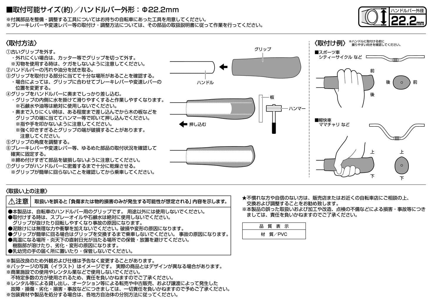 取付可能サイズ:(約)ハンドルバー外径Φ22.2mm
