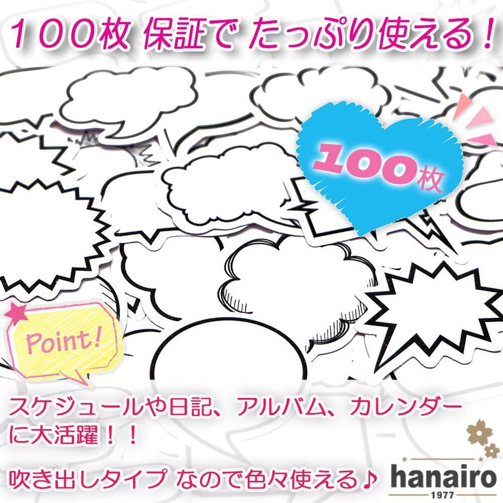hanairo シール フレークシール 100枚セット 手帳 日記 アルバム 手作り ステッカー (ふきだし)