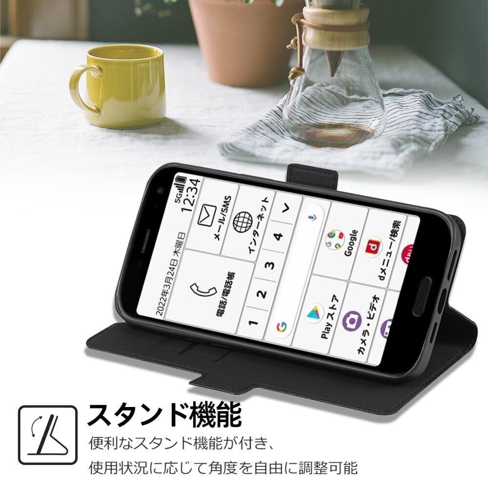 【特徴2】:スマホを横置きにしての視聴は不可欠なので、本ケースはスタンド機能が付きます。横向いて斜めに立てて両手を解放し、お気軽に読書やビデオの観賞を楽しむことができます。