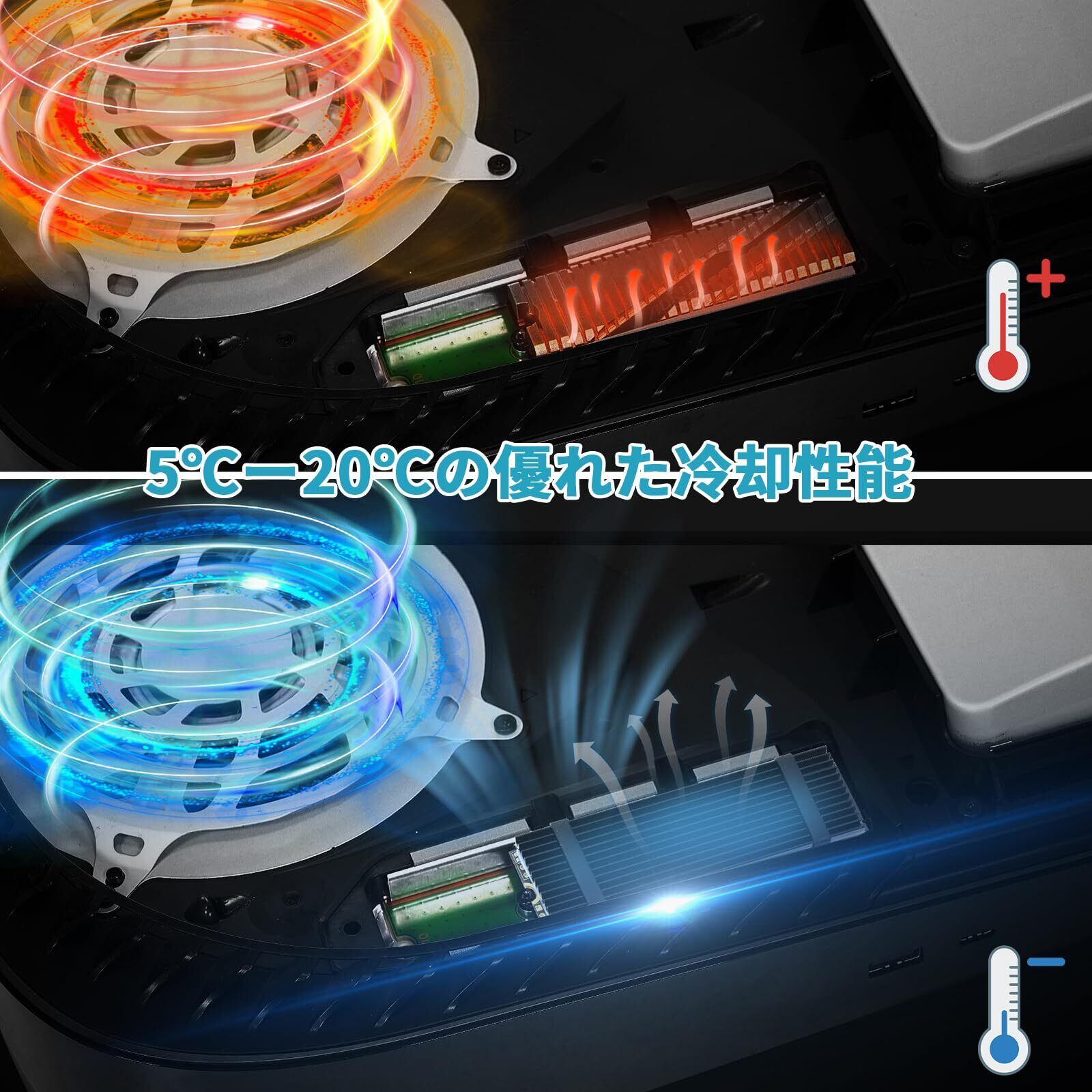 【10°C-30°Cの冷却効果】環境によって異なる10°C-30°Cの冷却効果は全負荷の状況でも良好なパフォーマンスの条件下でM.2 SSDを維持します。SSDの寿命を延ばすことができます。両面とも放熱効果あり、熱を効率よく吸収。