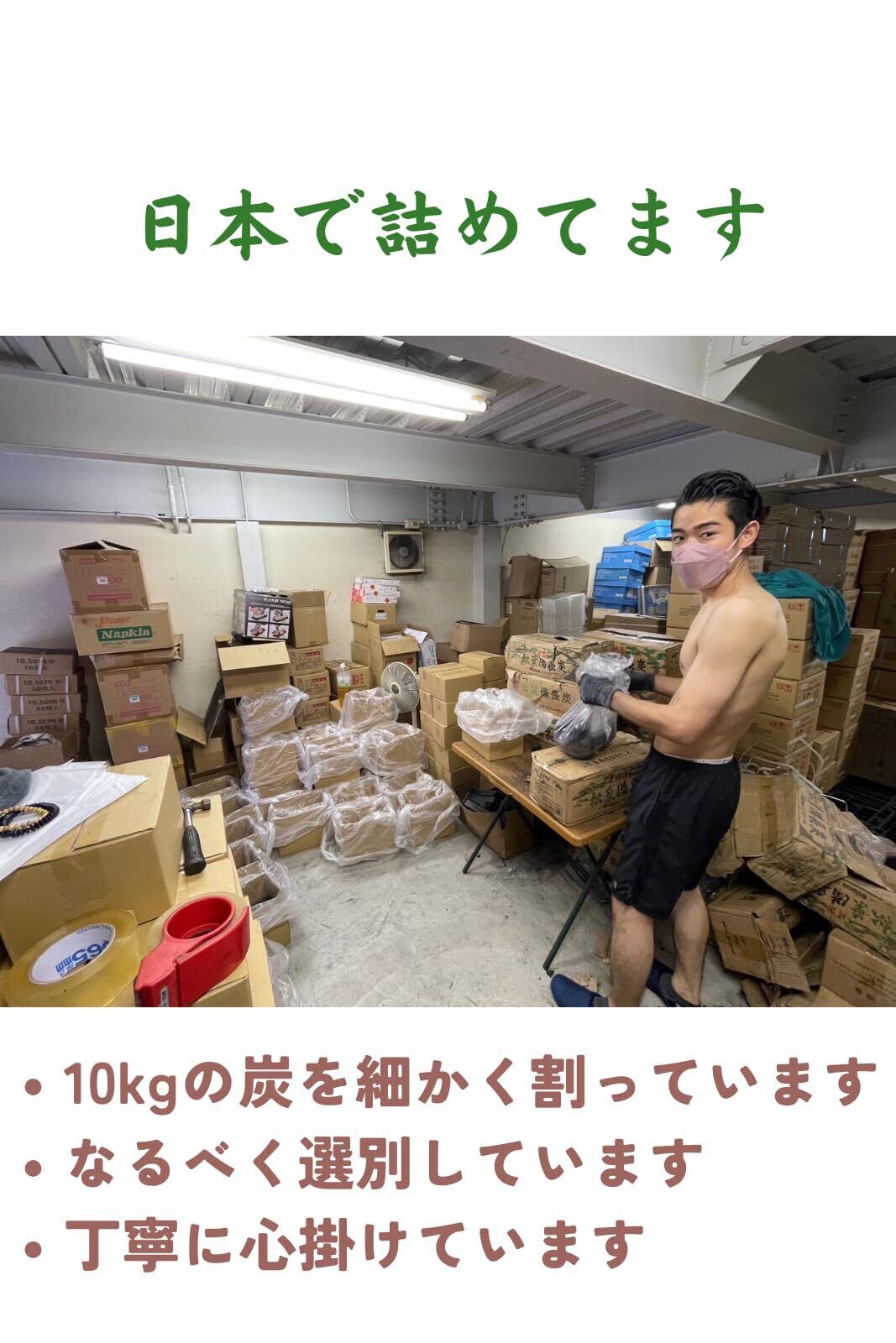粉は入れていません:オガ炭のみ入れています。粉状の物は入れていません。万が一大量に入っている場合は、ご連絡ください。