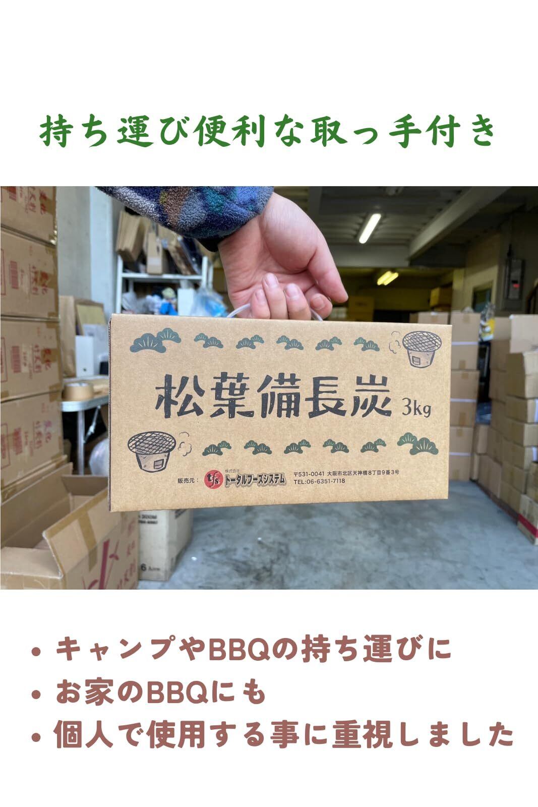 【TFS】オガ炭 3kg 松葉備長炭 少量 七輪用 BBQ用 キャンプ 長時間燃焼 コンパクトサイズ 煙無し 持ち運び便利 火がつきにくいです すいません