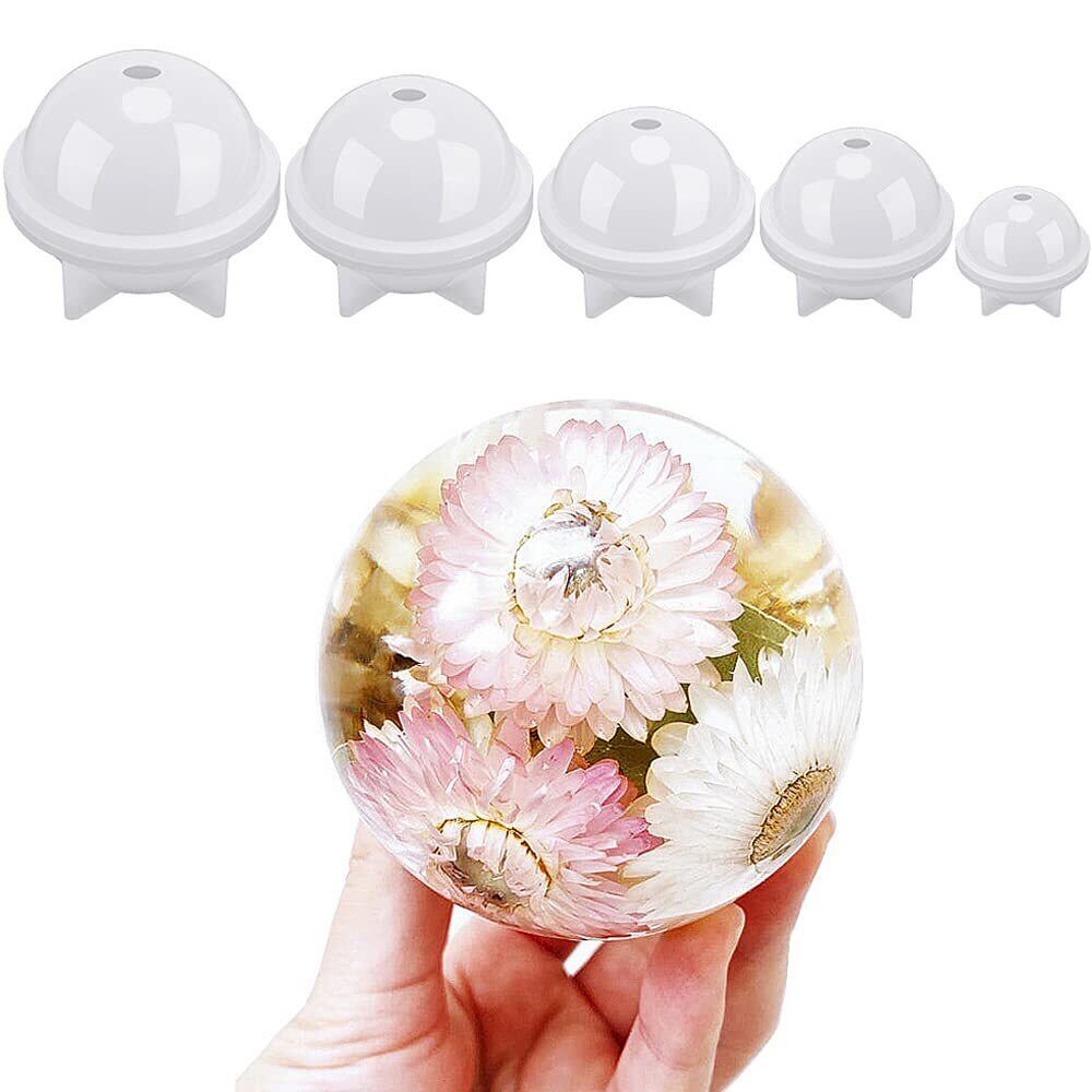 サムコス シリコンモールド ボール 丸 球体 5個セット UVレジン型 エポキシ樹脂 多サイズ DIY ハンドメイド ビーズ 型 抜き型 キット