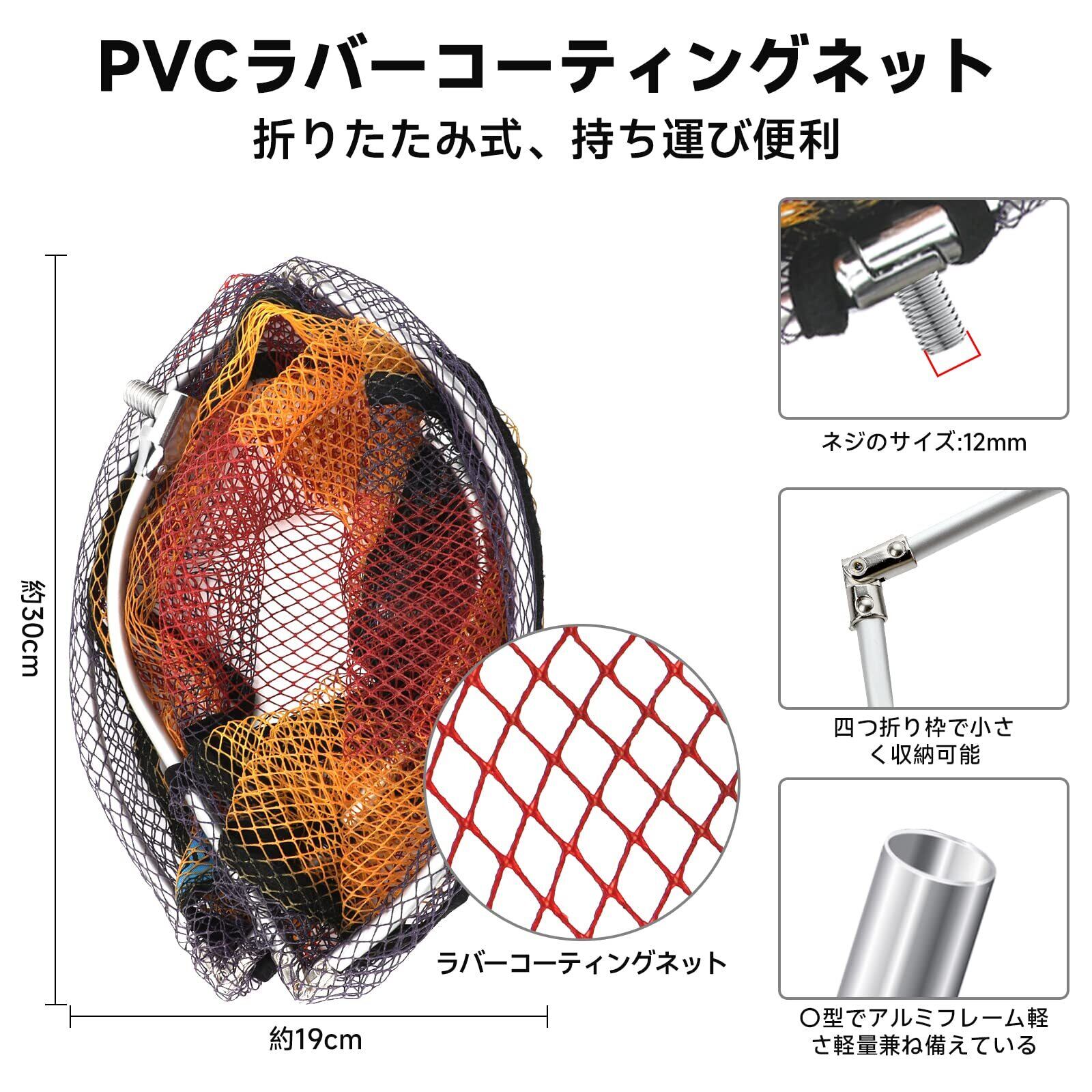 材質:枠:アルミ(折りたたみ式) ネット:PVC(ラバーコーティングネット) 網の深さ:28cm
