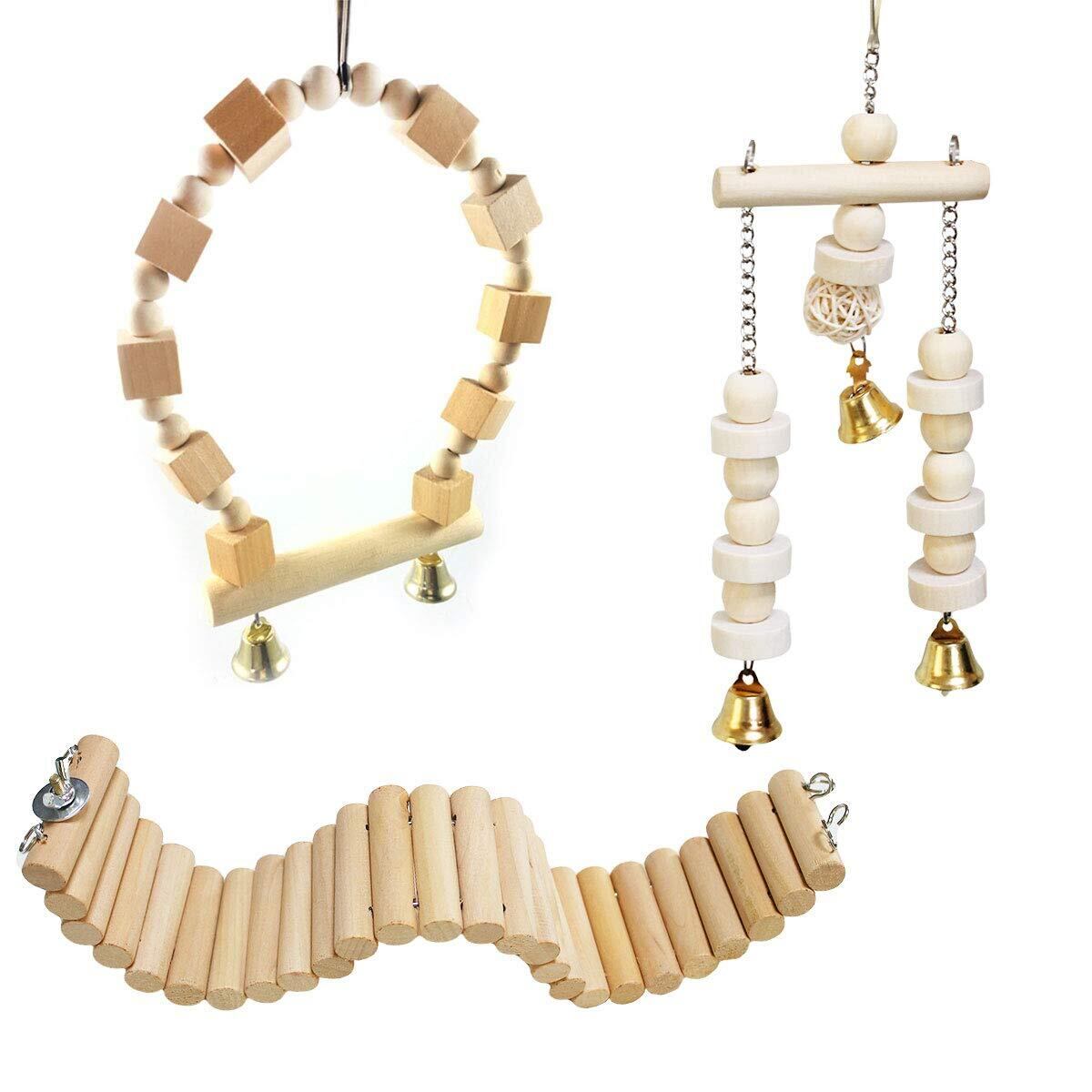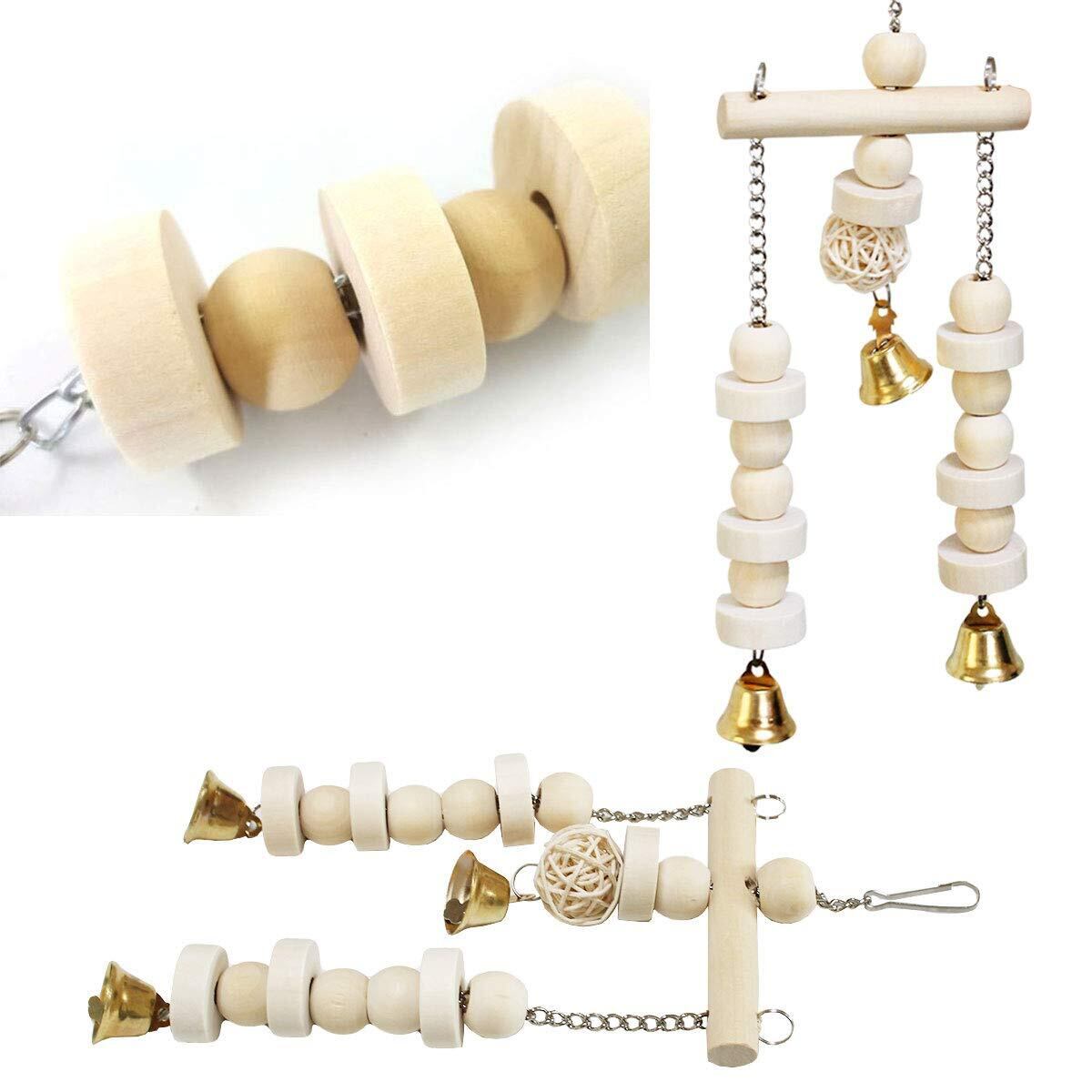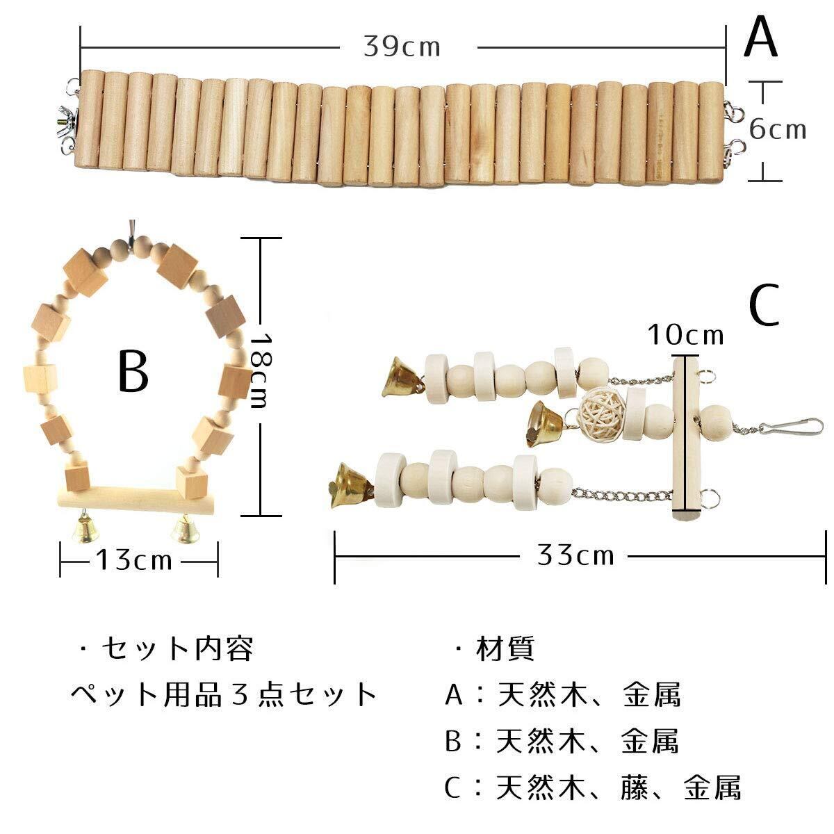 iikuru 塗料不使用 インコ おもちゃ 吊り下げ ブランコ 止まり木 鈴 木製 鳥 はしご 3点セット y307