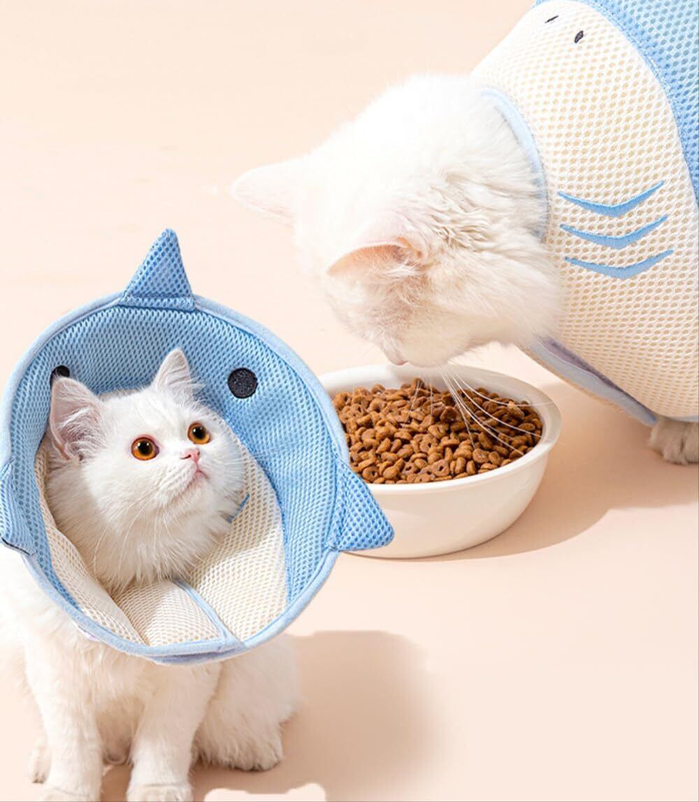 siawadeky エリザベスサークル 猫用 小型犬用 サメの形 ペット介護 術後ウェア 傷口保護 首ガード 避妊手術 介護用品 傷口保護 手術後のケアに 引っ掻き防止 首周り24-27cm