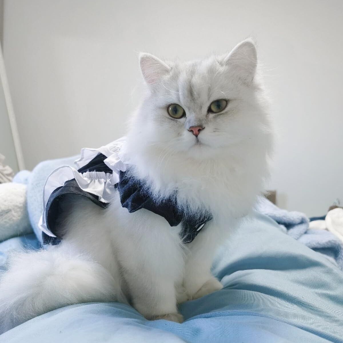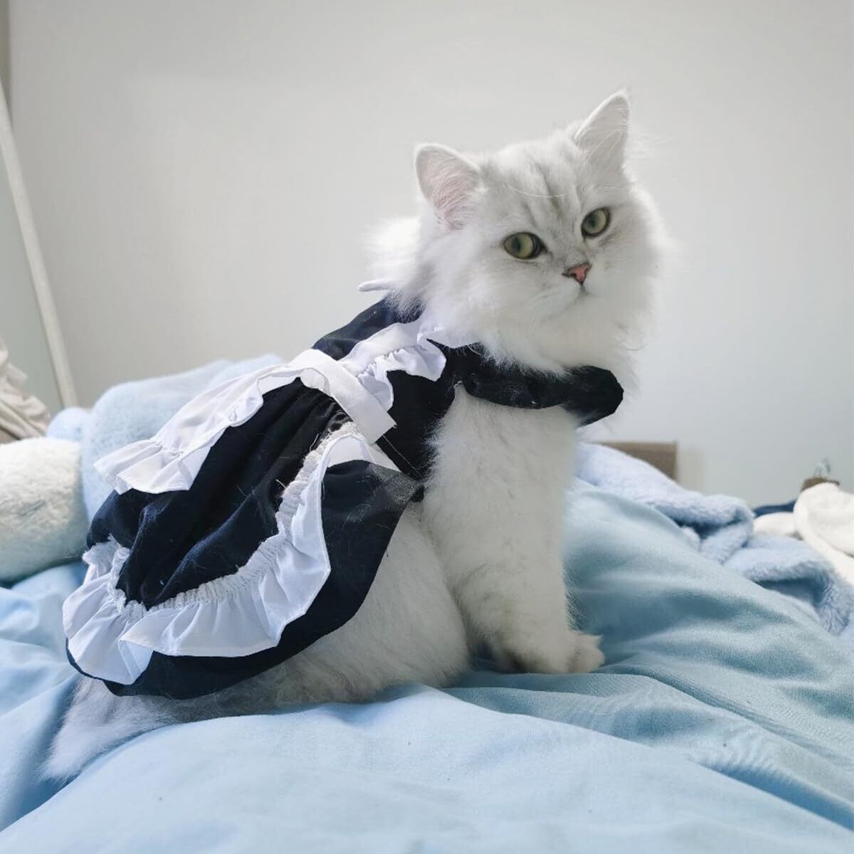 【可愛いスカート】日本で最も人気があるメイド服、猫と犬のお気に入りのドレス。蝶結びのデザイン、服を立体化させるためのストライプ柄、めちゃくちゃ可愛いです。洋服感覚で着用できるのも魅力です。毎日一緒に生活する愛犬が自宅でも散歩中でも、外出先でもこんなオシャレな服を着せると、綺麗なお姫様になりました。ファッション!注目を浴びるアイテムに間違いなし。