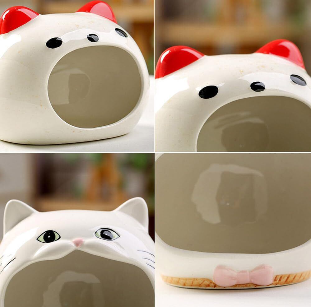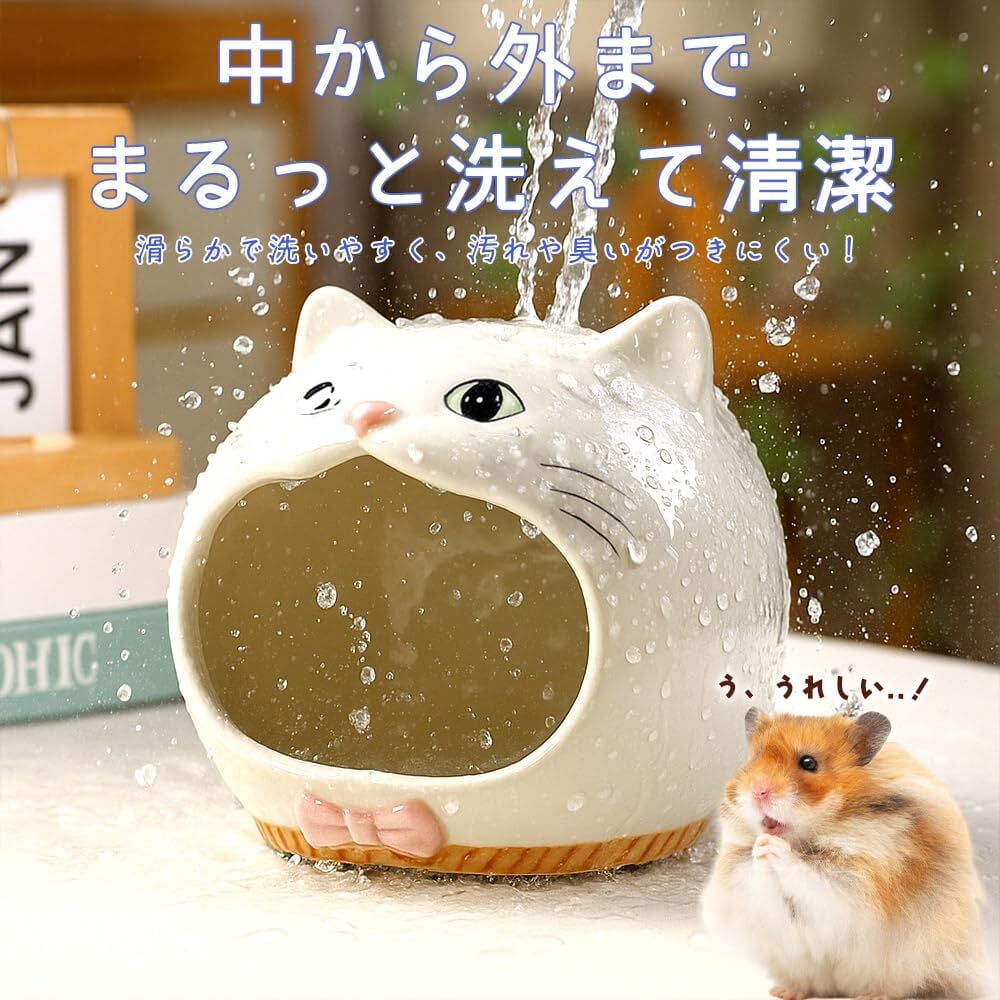 【 陶器で通年快適なペットハウス 】 夏はひんやり、寒い冬は柔らかい紙や綿と組み合わせて暖かく使用でき、季節に応じた快適な環境を実現。耐久性と清潔さが抜群。四季を通じて快適な住環境を提供します。まるっと洗える陶器素材で清潔。