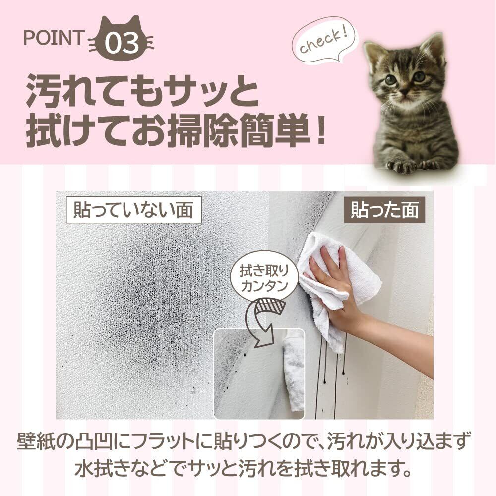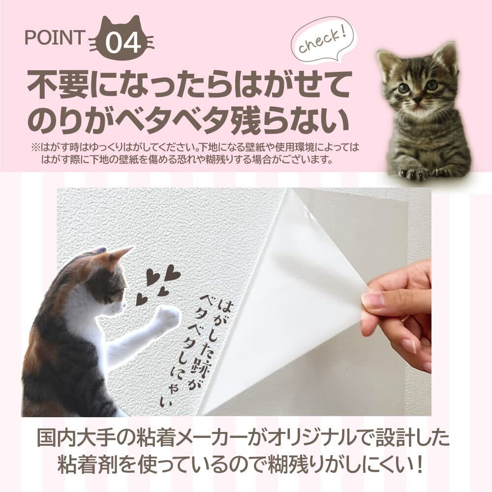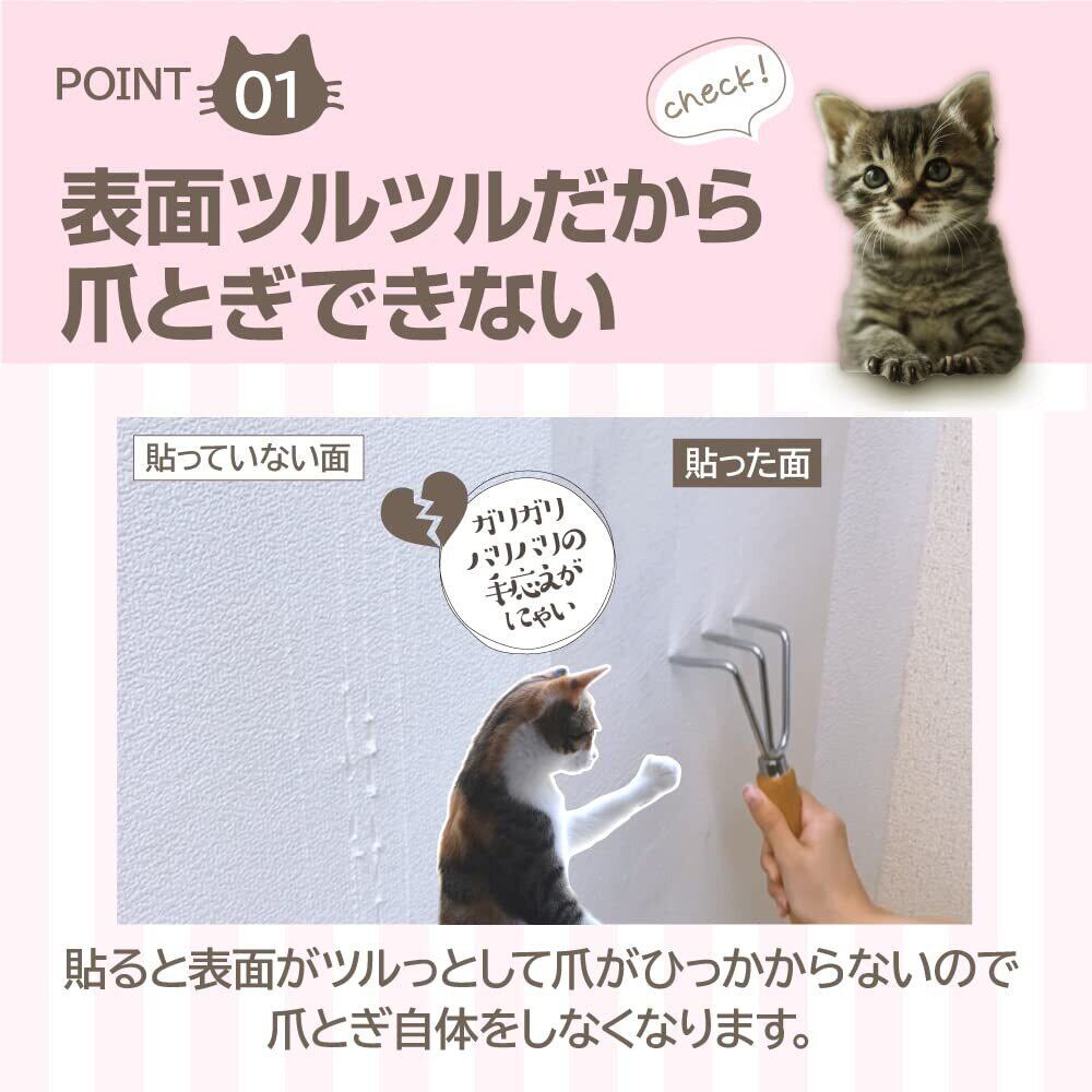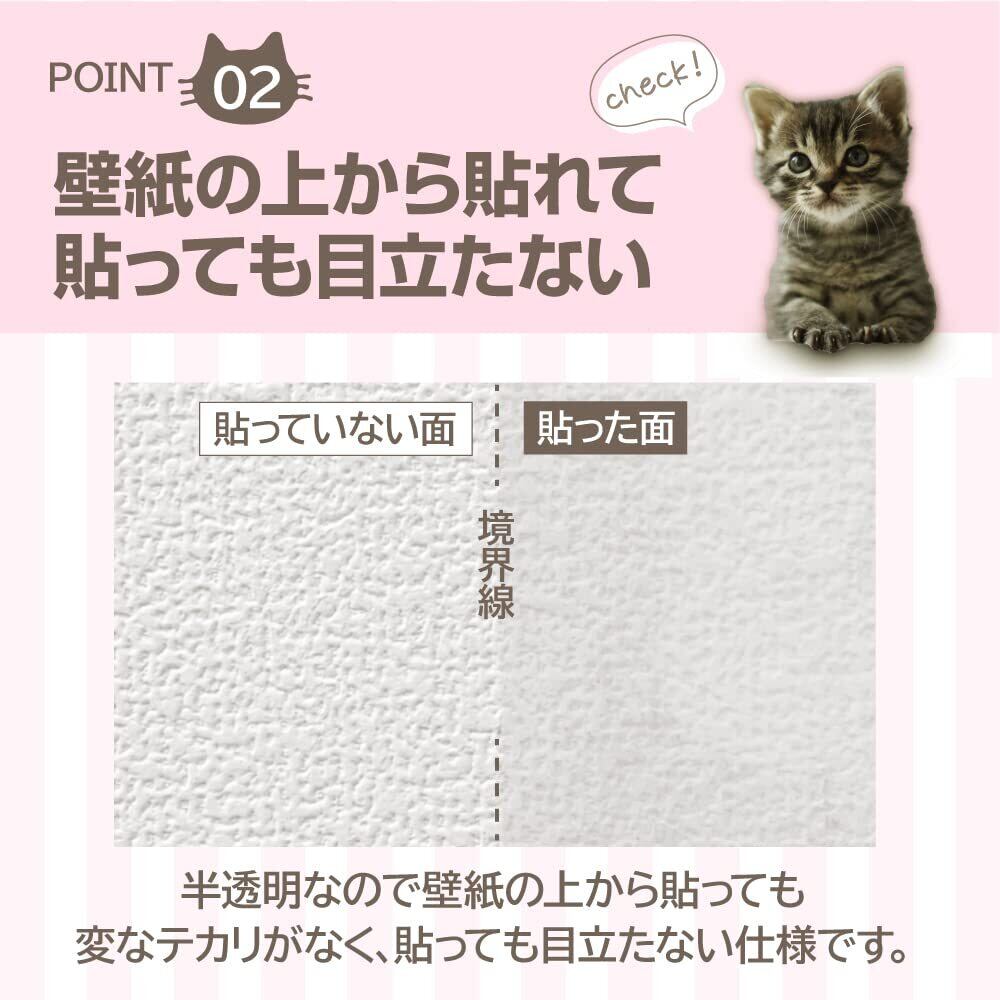 一般的な壁紙の上に貼るだけで、猫ちゃんの爪とぎを防止します。