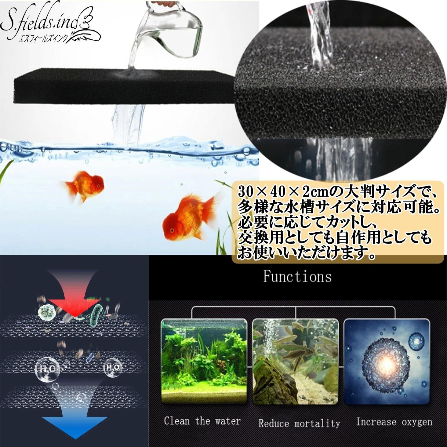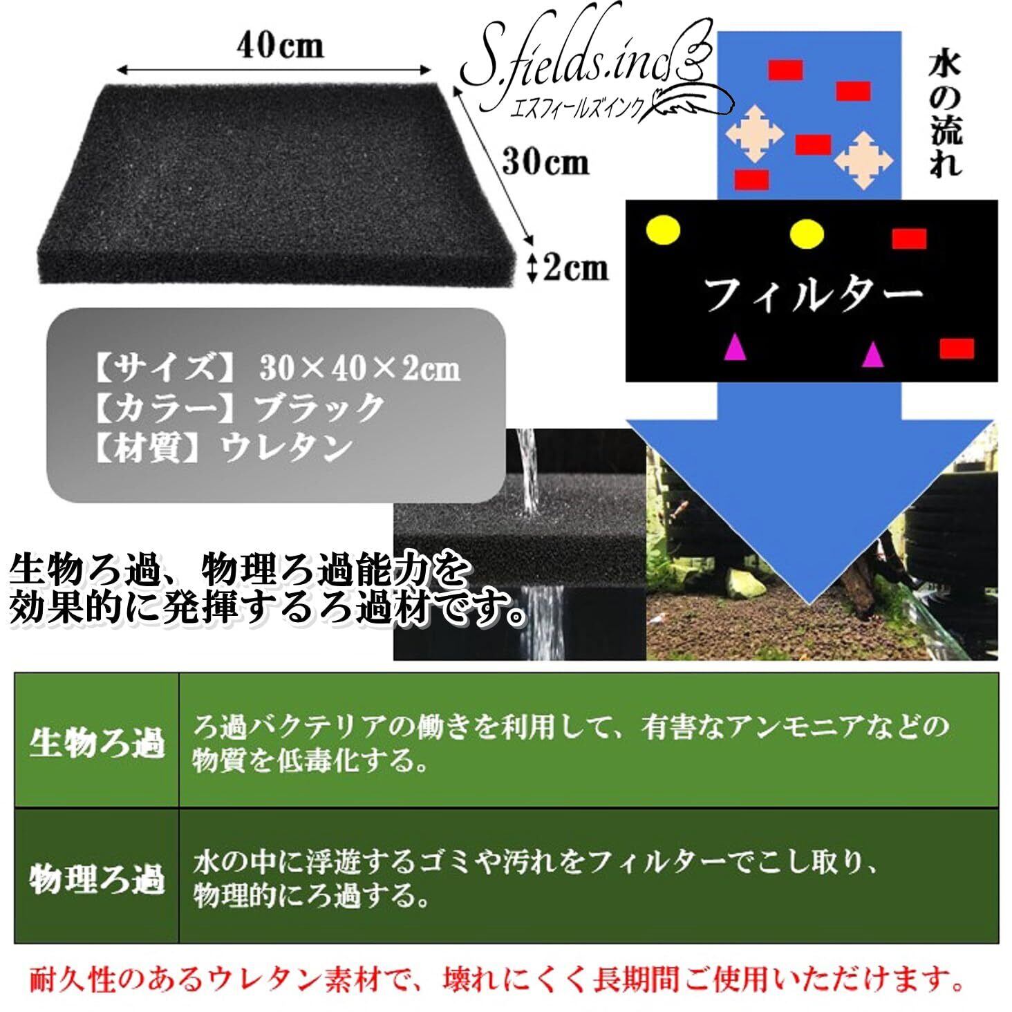 S.fields.inc 水槽スポンジフィルター 交換 自作 ろ過材 30×40×2cm アクアリウム 濾過 ウレタン