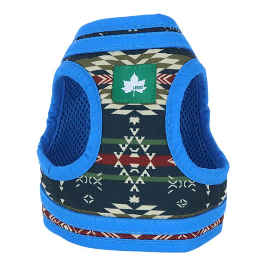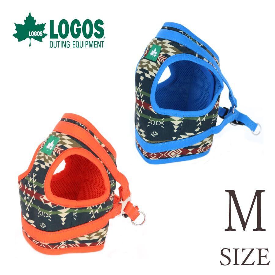 LOGOS ロゴス LAND柄 ハーネス | 胴輪 犬具 胴ベルト ブランド サイズ調整 しつけ 散歩 お出かけ 訓練 引っ張り防止 簡単着脱 (ブルー, M)