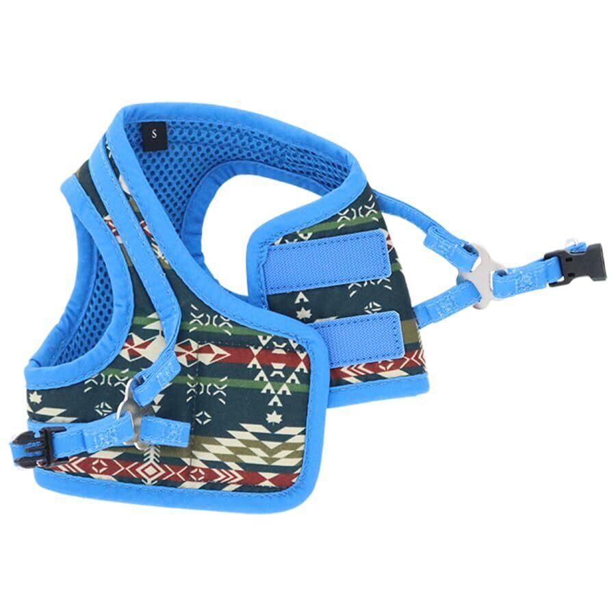 LOGOS ロゴス LAND柄 ハーネス | 胴輪 犬具 胴ベルト ブランド サイズ調整 しつけ 散歩 お出かけ 訓練 引っ張り防止 簡単着脱 (ブルー, S)