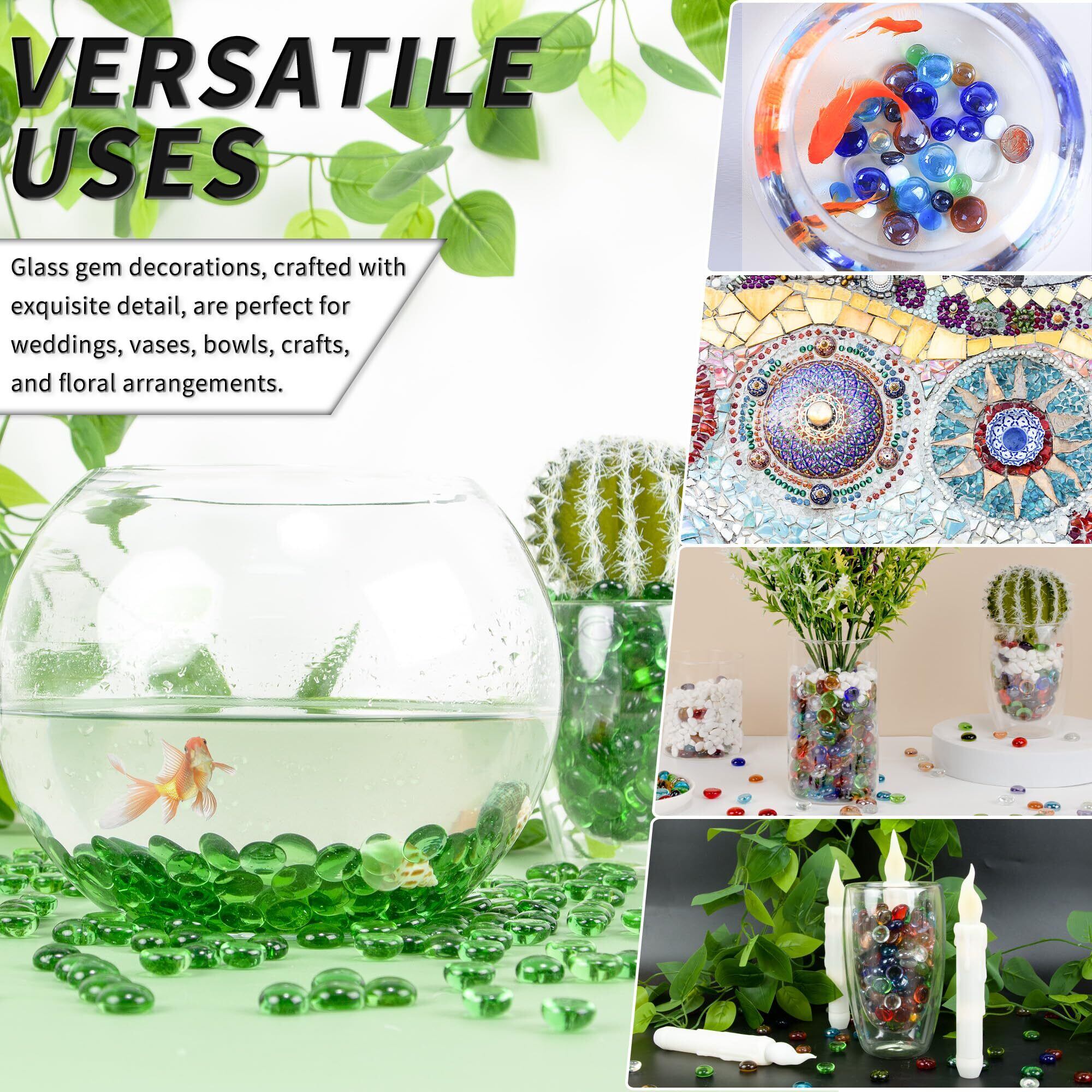 【広く応用される】 - DIYプロジェクトに使用できます。例えば、花瓶、魚タンク、キャンドルホルダー、火ピットのガラス岩石の充填、または結婚式の贈り物、パーティーの装飾などに使用できます。