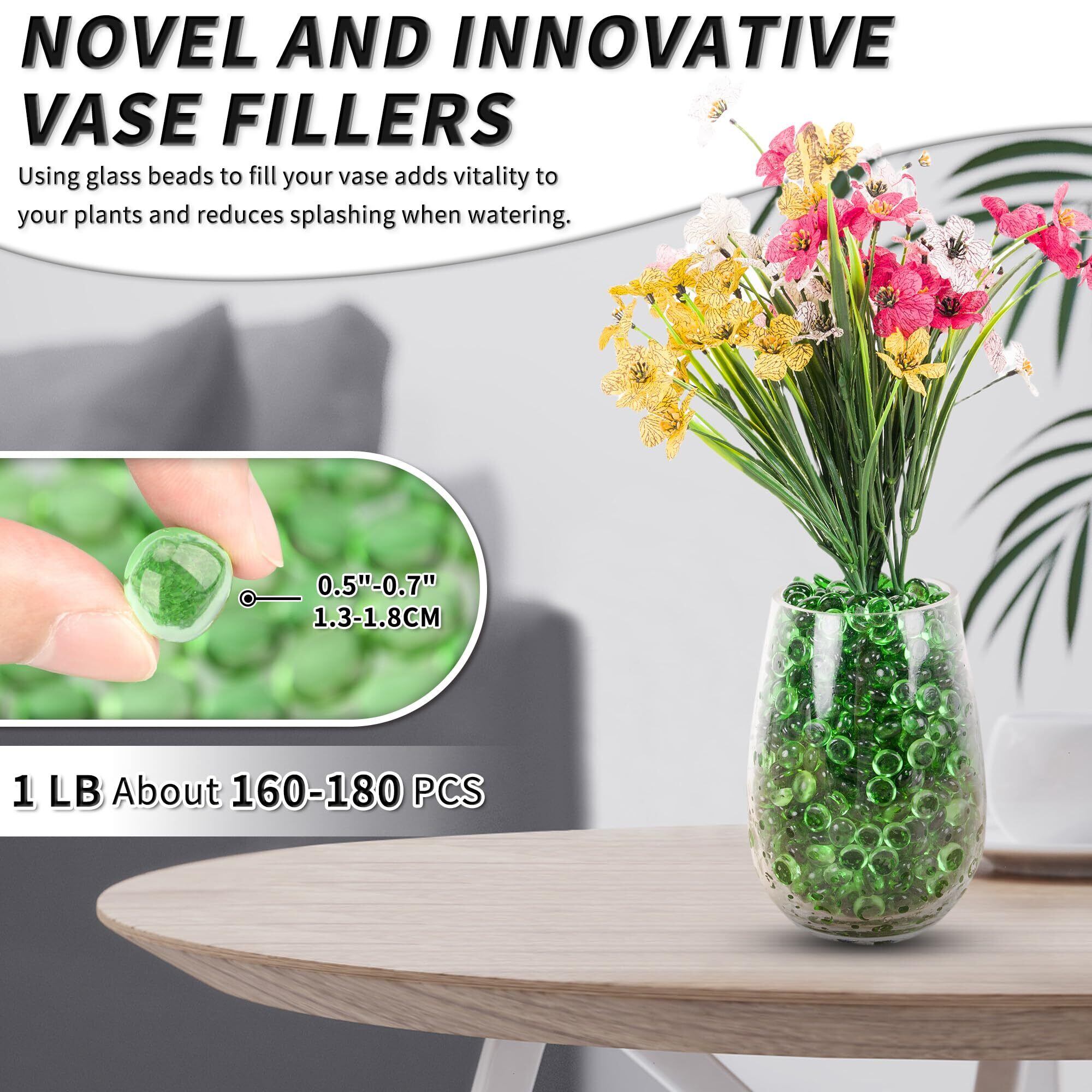 440gの緑色のフラットガラスビーズ、160-180個の小さなガラスマーブル、花瓶フィラーやフローラル用のミニフラットラウンド小石、魚タンク用の装飾宝石、ホームおよび水槽の装飾用、Green