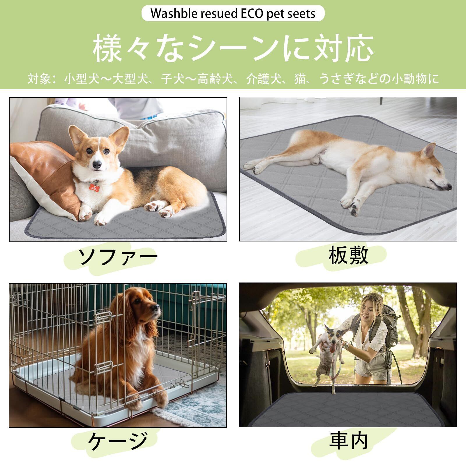 洗えるペットシーツ ペットマット 防水 2枚セット Qhoculi 犬 トイレシート おしっこマット ペットシーツ 洗える ペット おしっこシート 犬 トイレマット 丸ごと洗える 消臭 速乾 おしっこパッド ペット用 トイレ下敷きマット 四重構造 超吸収 漏れ防止 滑り止め エコ 制菌 小型 中型 犬・猫 ペットシーツ 介護 (ライトグレー, 120x90CM 2枚セット)