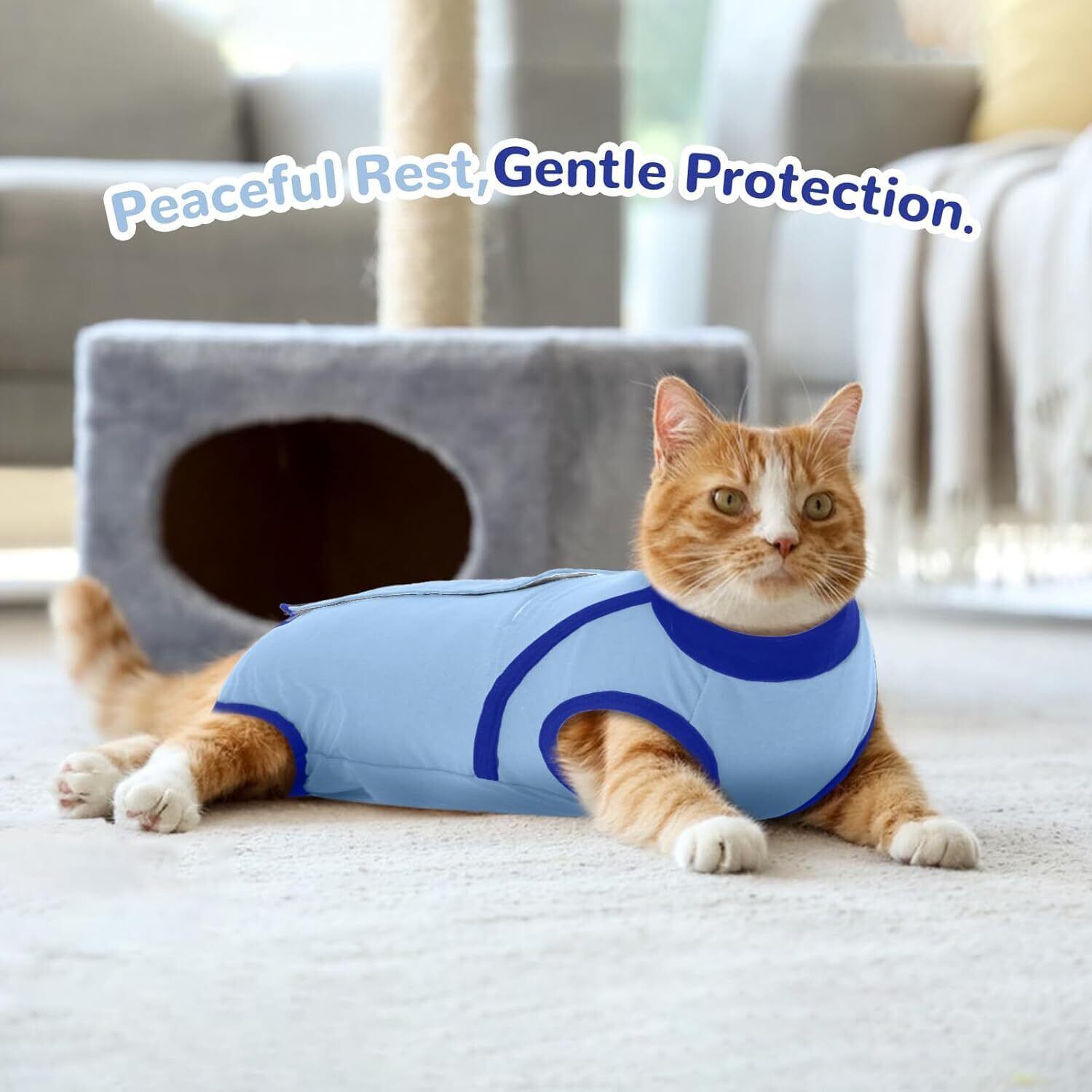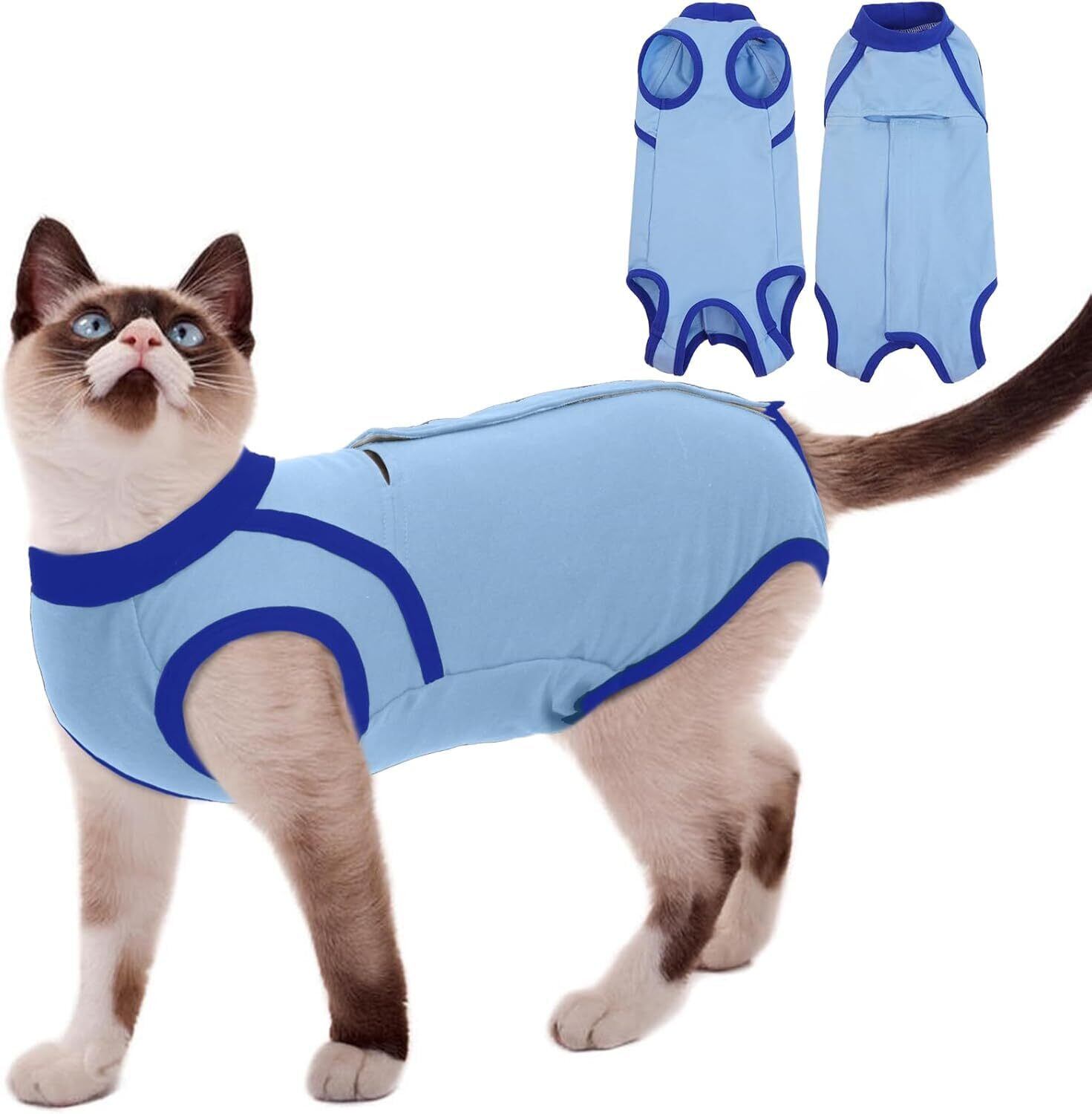 Kuoser猫用術後服 術後回復 通気快適 伸縮素材 マジックテープ 着脱簡単 エリザベスカラー代わり 術後回復 皮膚保護 離乳 ブルーM