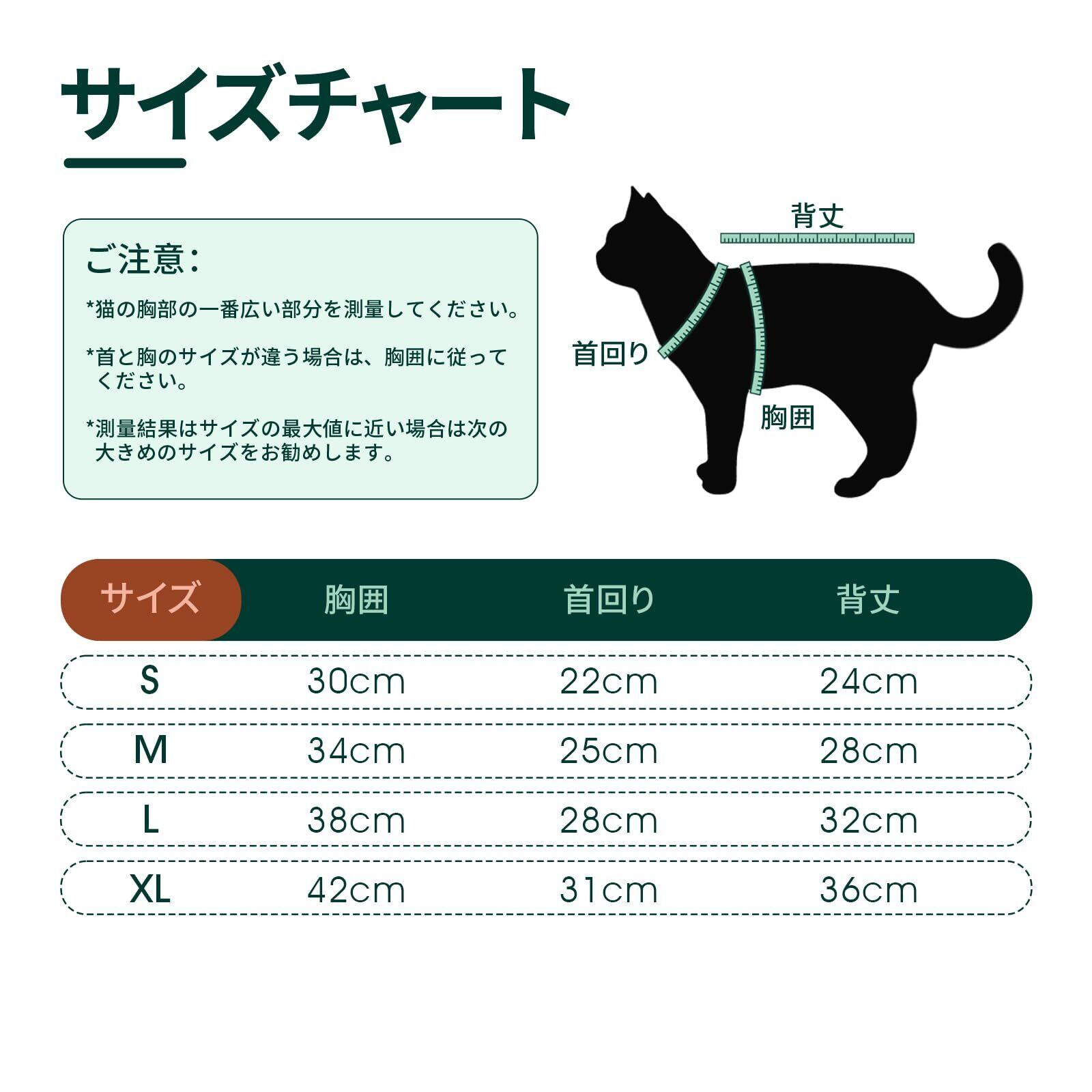 【4つのサイズが利用可能】S~XLまで共に四つのサイズがあり、ほとんどの猫に適用しています。